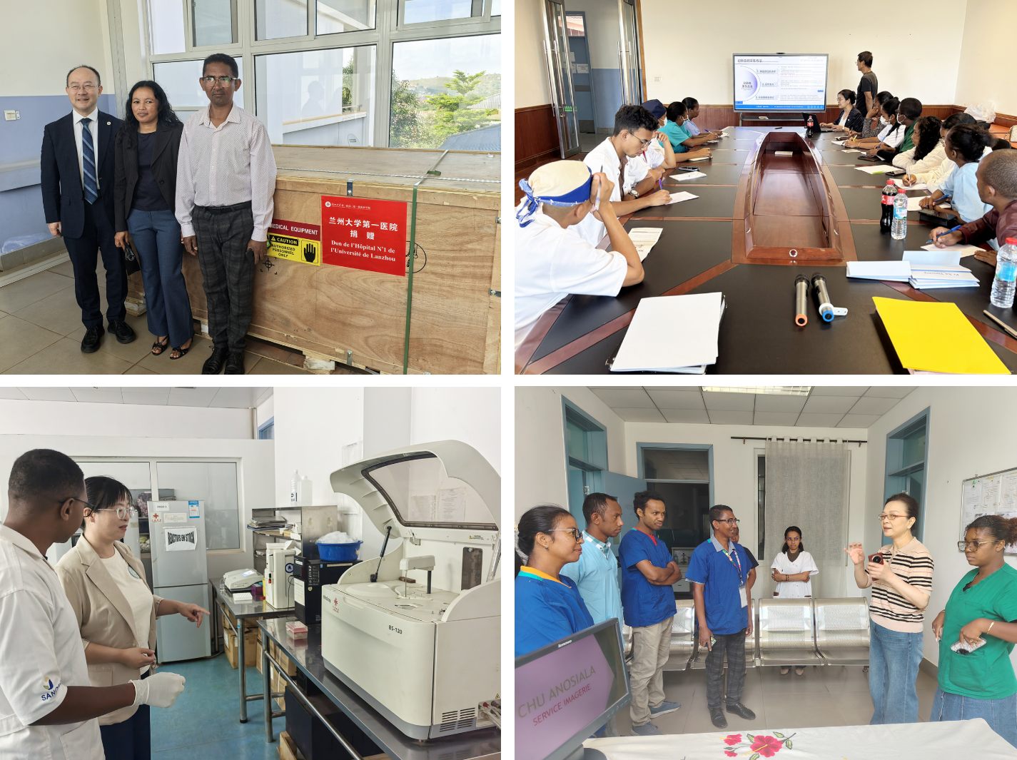 3月23日至27日,兰州大学党委常委、第一医院党委书记王定峰率专家团一行6人,受邀赴马达加斯加推进兰州大学第一医院与阿努西亚拉医院呼吸内科建设项目,举行首批设备捐赠仪式、开展实地调研和设备安装与培训交流。