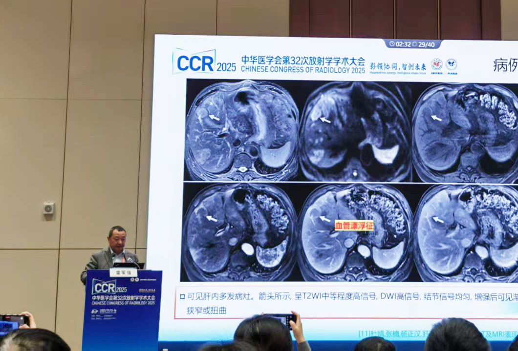 会上,中华放射学会腹部学组副组长、中华放射医师协会消化学组副组长、兰大一院副院长雷军强教授受邀在腹部学组分会场作《肝脏多发病灶影像学评价》专题讲座,并参加了《影像学评估肝脏储备功能中国专家共识》研讨会及《中华放射学杂志》“肝癌影像专栏”约稿会,就肝脏病变的影像学评价进行了深入探讨。王刚教授主持了传染病学组分会场的专题讲座,并与科室医师兰金辉一同参加了CCR2025中德影像圆桌论坛—“Meet the Expert” Workshop,与德国顶尖放射学专家们就人工智能在放射学中的应用及放射领域当前论文趋势进行交流。