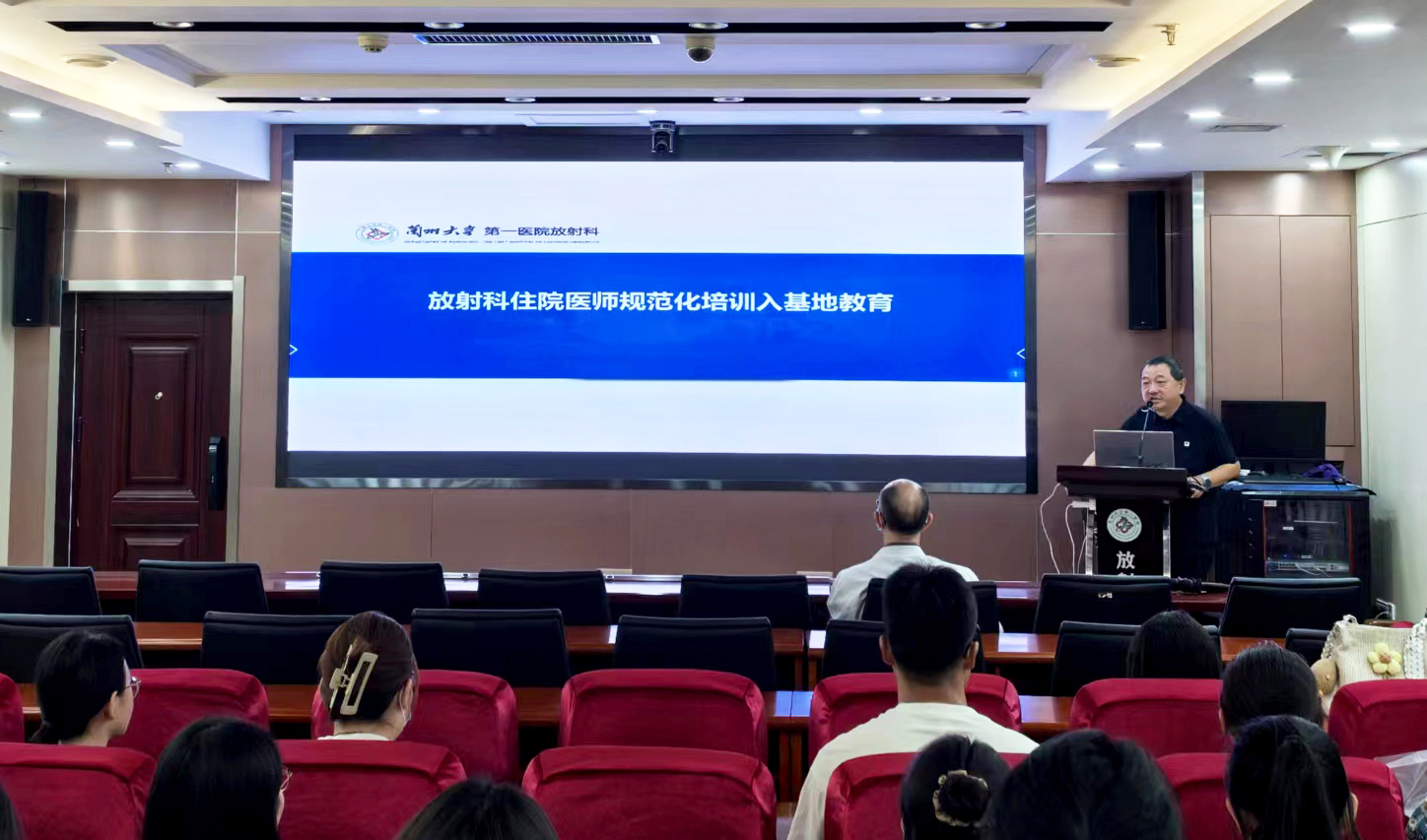 近日,兰大一院放射科举办了2024级住培新学员入基地教育活动。兰大一院副院长、放射科住培基地主任雷军强教授,兰大一院放射科副主任、放射科一部主任、医学影像教研室主任王刚教授出席活动并致辞。