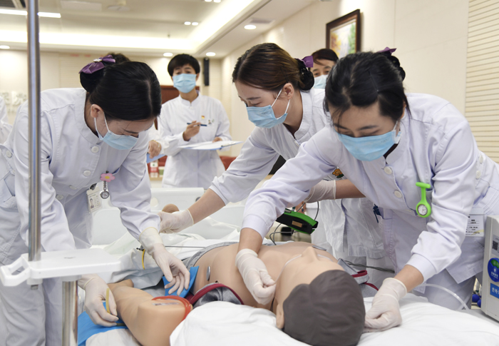 本次大赛由兰大一院护理部与院工会联合举办。共有204名护理人员组成的68支队伍参赛,由评委现场随机抽取病例,根据选取病例,选手快速做出反应,组织配合实施抢救,评委根据参赛队伍的总体设计、应急反应、护理技术、总体陈述四个维度进行评分。
