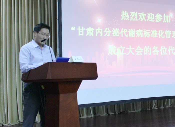 2018年5月26日下午,由省医学会内分泌专业委员会主办,兰大一院内分泌科承办的“甘肃内分泌代谢病标准化技术联盟成立大会”在宁卧庄宾馆成功召开。省医学会副会长兼秘书长滕贵明,兰大一院党委书记赵社文,省内分泌专业委员会主任委员汤旭磊出席会议。来自全省80余家医疗机构及科室相关负责人参加会议并签订合约。会议由兰大一院内分泌科负责人傅松波主持。
