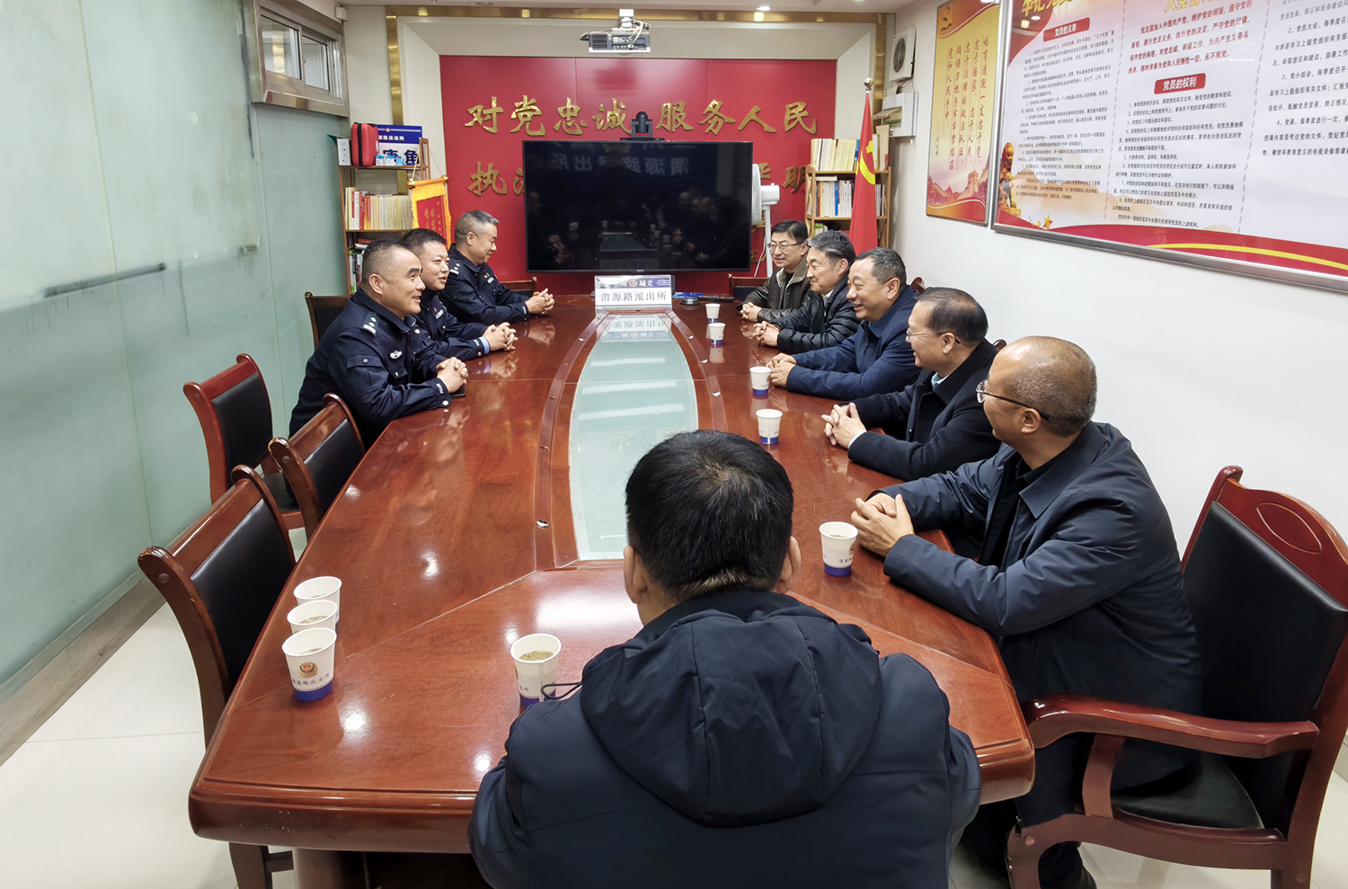 随后,雷军强一行来到渭源路派出所,向坚守一线的公安干警致以节日的问候。他表示,辖区派出所长期以来为医院提供坚实安全保障,高效处置医患纠纷、维护诊疗秩序,深度指导保卫人员培训演练,严密防范电信诈骗,是“平安医院”建设不可或缺的重要力量。希望在新的一年继续深化警医联动协作机制,共同筑牢辖区安全防线,营造安全、有序、和谐的就医环境。
