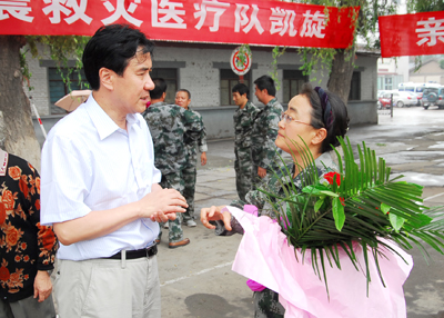 7月28日中午12:50,兰大一院赴漳县抗争救灾医疗队圆满完成任务返回我院。院长余勤、副院长杨永秀及我院中层干部、部分医疗队员亲属等隆重欢迎医疗队凯旋。