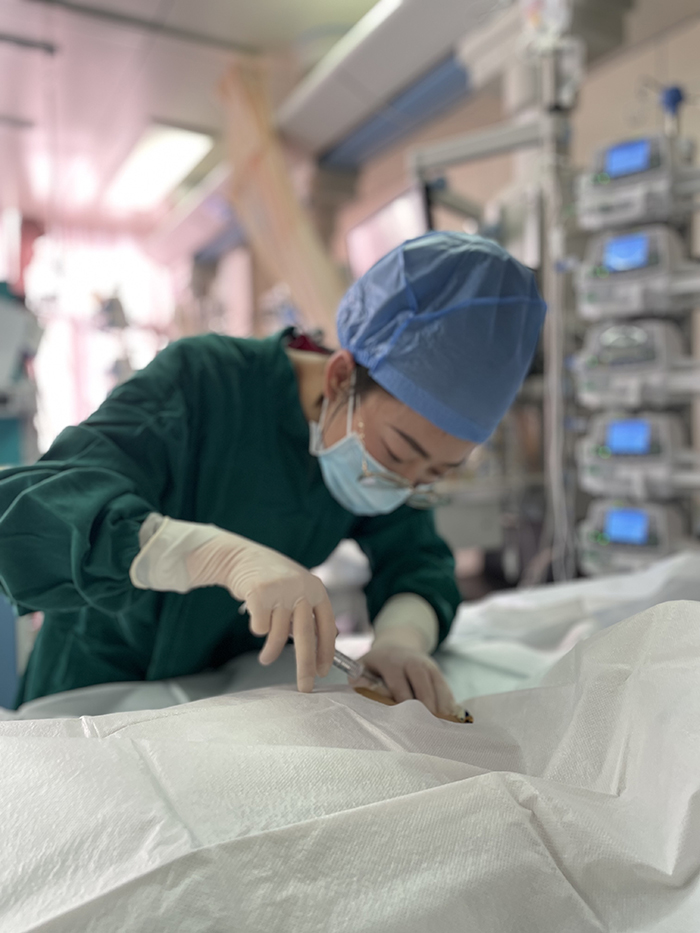 在ICU病房中,随时可以看到医护人员抢救病人的身影,医生熟练的为危重病人进行气管插管、中心静脉穿刺、支气管镜灌洗、调试呼吸机辅助呼吸、ECMO上机;护士熟练的测量CVP、MAP、吸痰、翻身扣背以及配合各项抢救治疗。