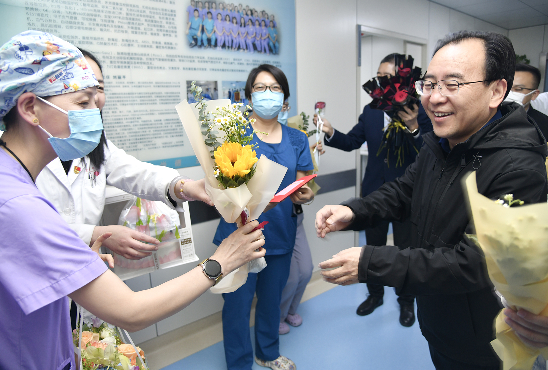 为庆祝护士节,医院工会和护理部提前为护士们准备了温馨的花束和美味的蛋糕。党委书记王定峰、院长李汛及院领导班子全体成员、行政部门各位领导,向院本部、东岗院区、西站院区在护理岗位辛勤工作和默默付出的每一位兰一护理人送上温暖和祝福。
