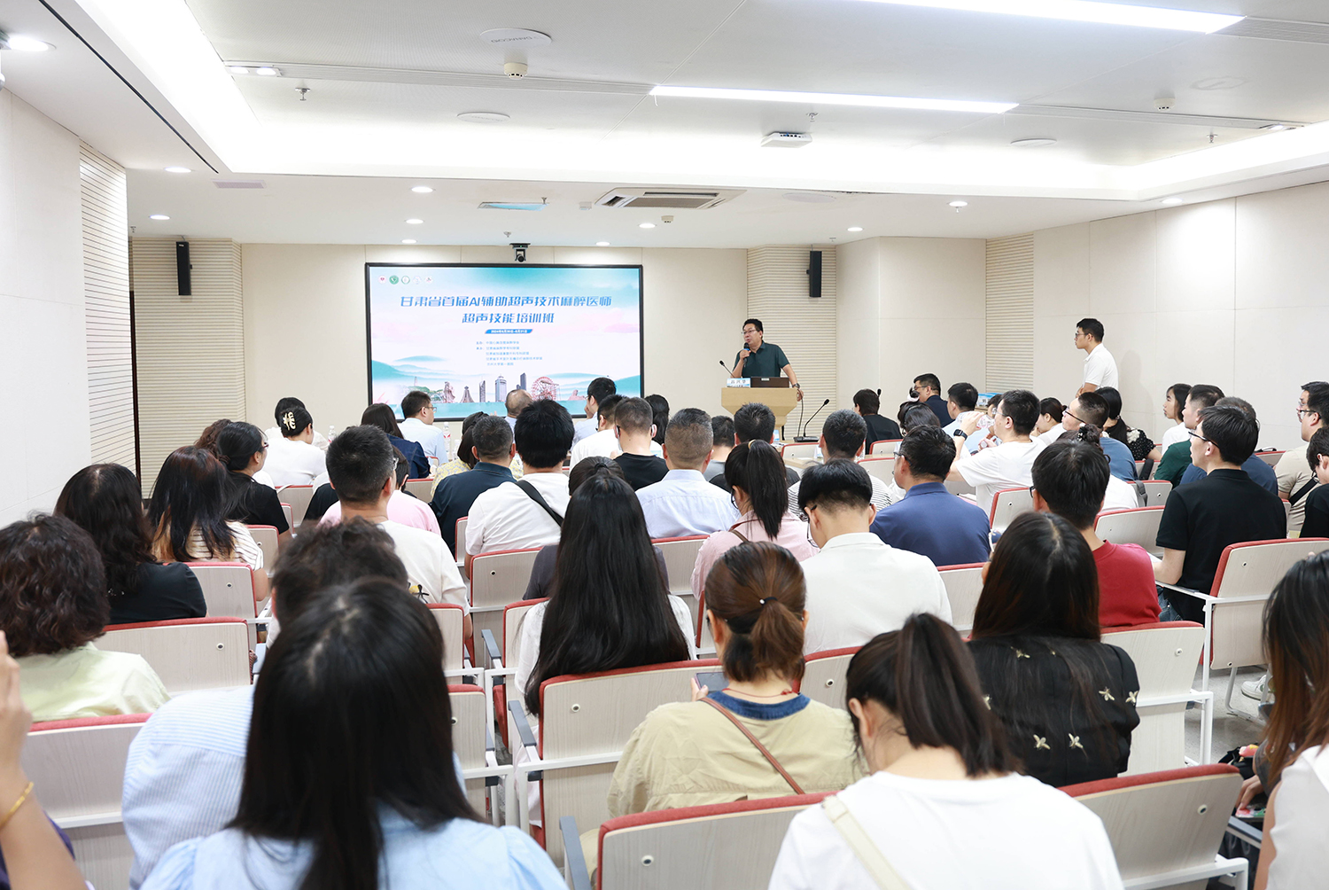 8月30—31日,兰大一院麻醉手术科成功举办“甘肃省首届AI辅助超声技术麻醉医师超声技能培训班”,培训班由中国心胸血管麻醉学会主办,甘肃省麻醉学专科联盟、甘肃省加速康复外科专科联盟、甘肃省手术室外无痛诊疗麻醉技术联盟及兰州大学第一医院联合承办,来自甘肃及周边省份基层医疗单位的40多位麻醉医生参加培训。