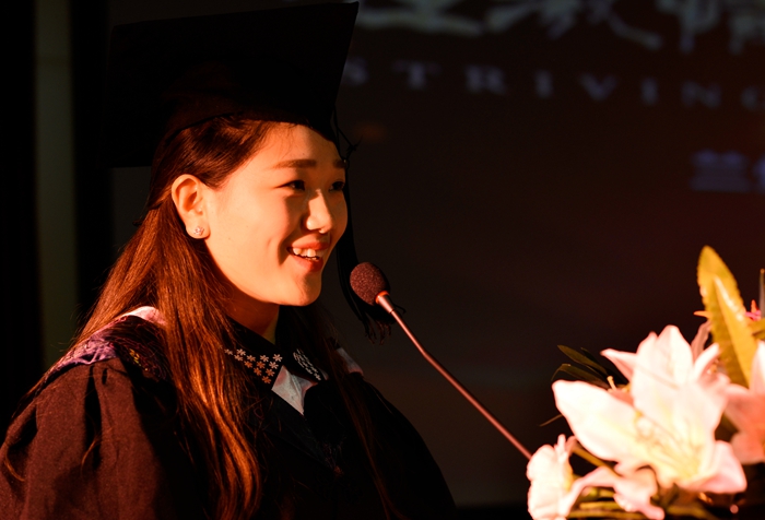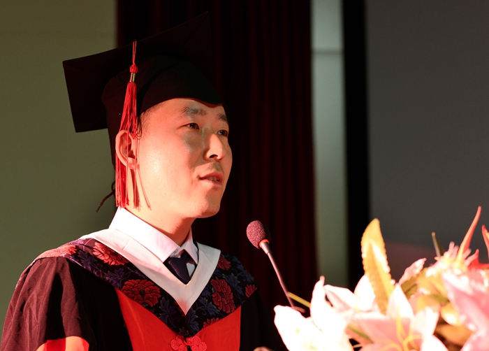 研究生代表褚旭、本科生代表魏媛两位同学作为毕业 生代表发言,表达对学院和师长的感谢,表示在憧憬未来的同时,已经做好经风历雨的准备,将以学院的师长的言传身教为典范,坚定医学理想,并为之不断努力。