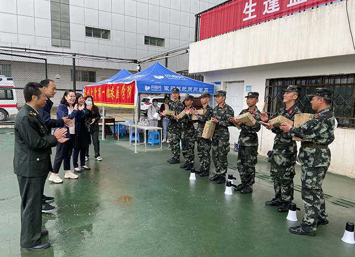 杨永秀向教官详细了解第一临床医学院参训学生的军训情况,向军训教官的辛苦工作表达诚挚的感谢。学院领导老师向参训教官送上了慰问品,提前向他们致以中秋和国庆的节日祝福。