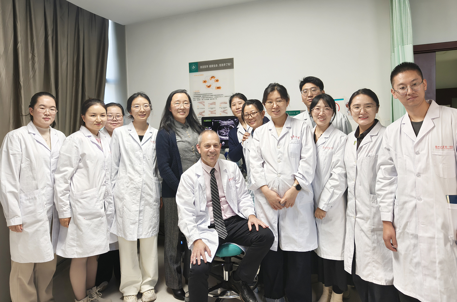 10月17日,加拿大白求恩医学发展协会选派妇产科及超声医学领域专家团队与兰大一院超声医学科开展学术交流。专家团成员包括加拿大多伦多大学圣迈克尔医院母胎医学及产科超声部门主任Howard Berger教授、多伦多汉伯河医院医学影像科诊断医学超声医师陈蕾女士,以及多伦多大学病童医院应用基因组学中心高级研究技术员王婷女士。