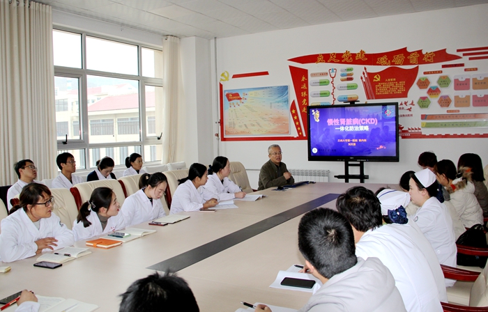 随后,刘天喜主任带领支部党员前往白银市第三人民医院进行学术交流活动,受到医院的热烈欢迎。在刘天喜主任的带领下,大家对对授课内容《慢性肾脏病--一体化防治略》进行了系统化学习,并表示从中受益匪浅。之后,在刘天喜主任的带领下,支部党员与白银市第三人民医院血液净化中心医务人员进行了交流,了解透析病人现状,并针对该中心的工作提出了宝贵意见。
