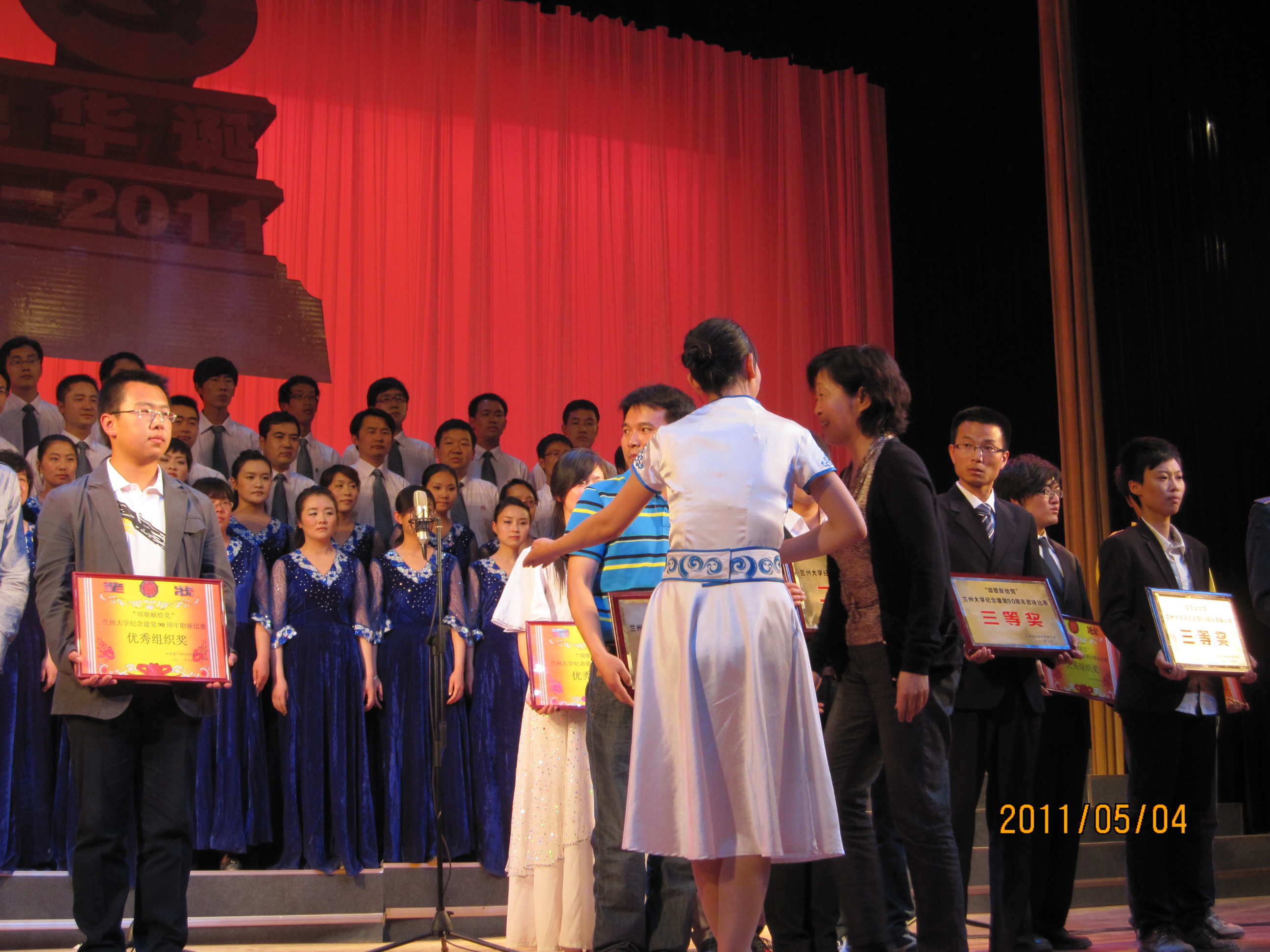 此次比赛以庆祝“五四”青年节、弘扬爱国主义精神、迎接中国共产党成立90周年为主题,旨在表达广大青年学生对中国共产党和社会主义祖国的热爱之情,展现青年学子昂扬奋发、锐意进取的精神风貌。此次比赛共有29个单位参加。我院参赛队在本次合唱比赛上歌声激昂、热情洋溢,唱出了当代青年人的朝气与激情,唱出了我院良好的精神面貌,受到了评委一致好评,最终我院以9.6680的高分脱颖而出,荣获比赛一等奖。
