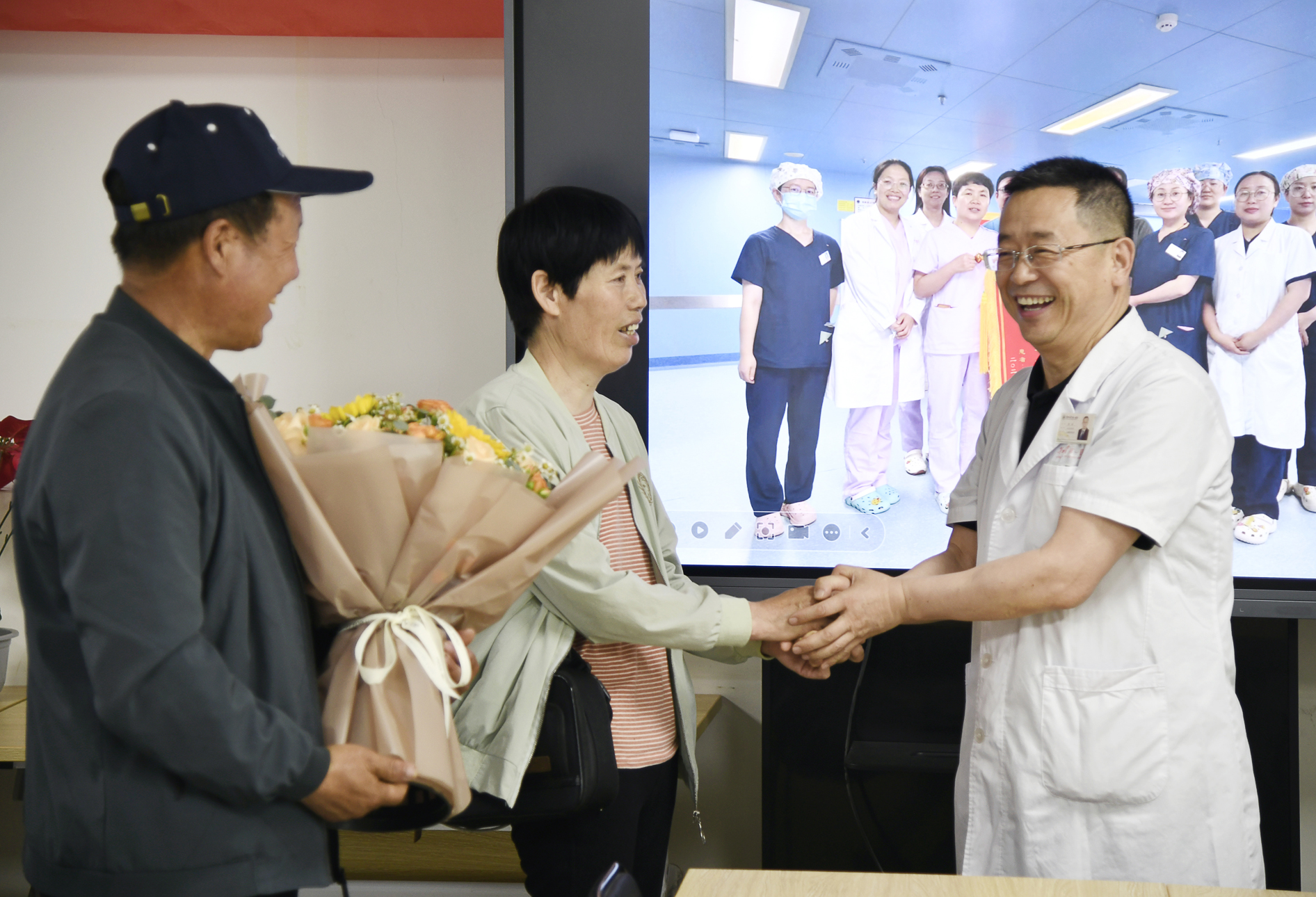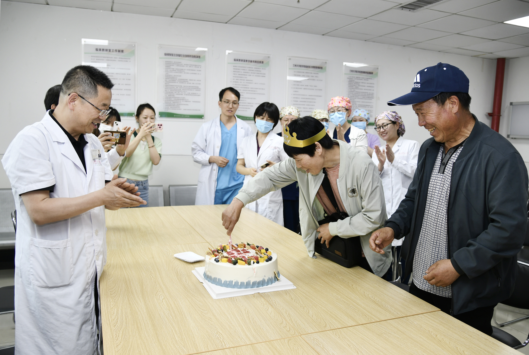 此次复查结束后,心血管外科医护人员专程为贾女士举办了重获“心”生一周年生日派对,并送上了鲜花和祝福。