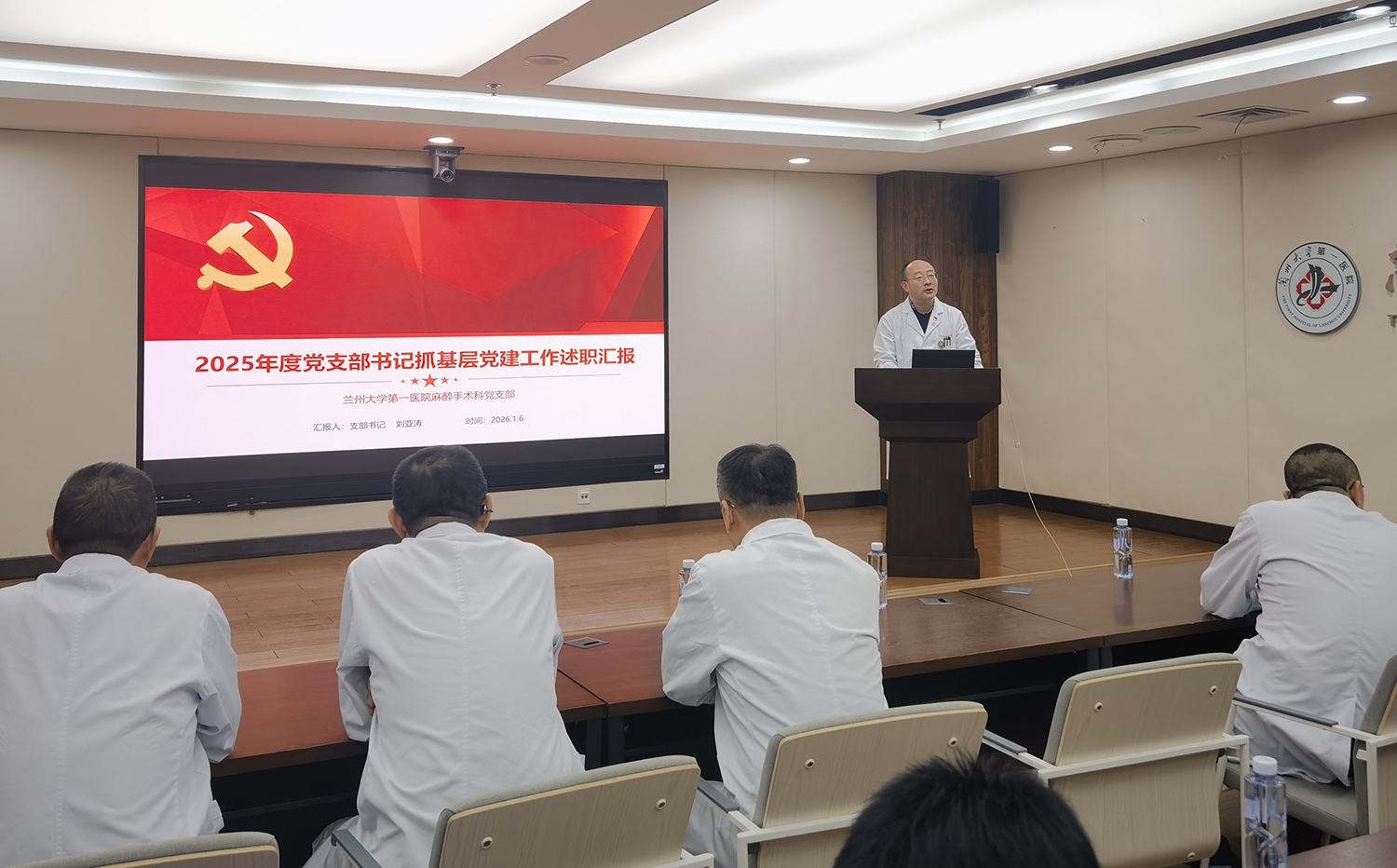 1月6日,兰大一院党委委员、副院长姬瑞为医疗第二党总支、西站院区直属党支部全体党员讲授专题党课。会议由医疗第二党总支书记刘亚涛主持。