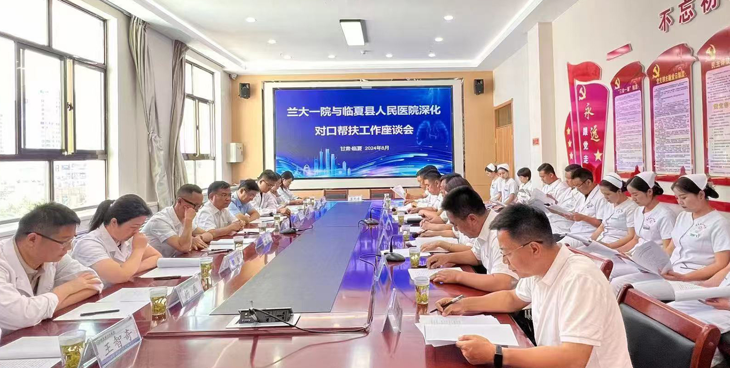 8月21日,兰州大学第一医院与临夏县人民医院深化对口帮扶工作座谈会在临夏县人民医院召开。兰大一院党委副书记、工会主席车世平,临夏县委副书记、县长马俊平出席会议并讲话。兰大一院党委办公室主任郭鹏军、医务处副处长梁锴,兰大一院驻县对口帮扶专家及临夏县卫健局主要负责同志,县医院班子成员、科室负责人参加会议。县政府副县长拜文玲主持会议。
