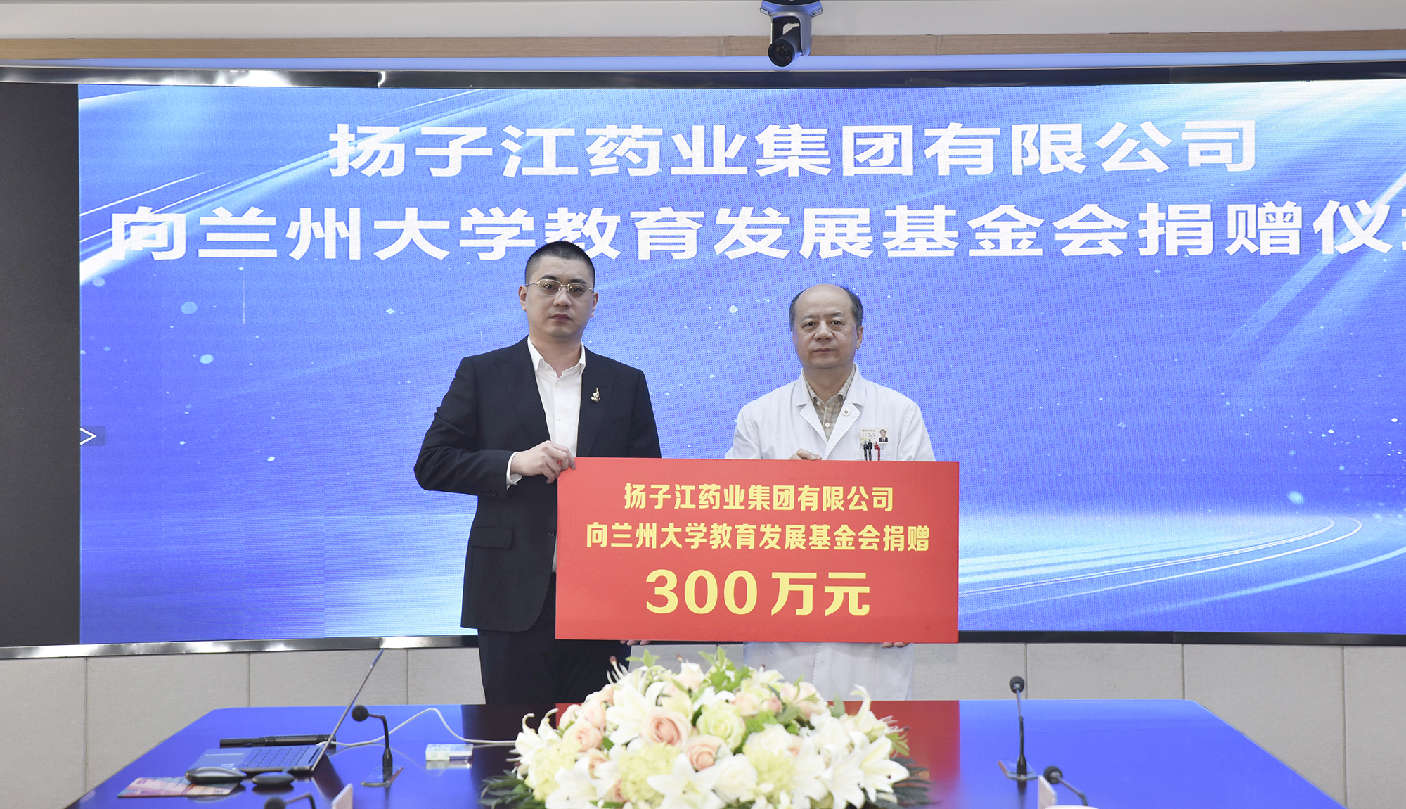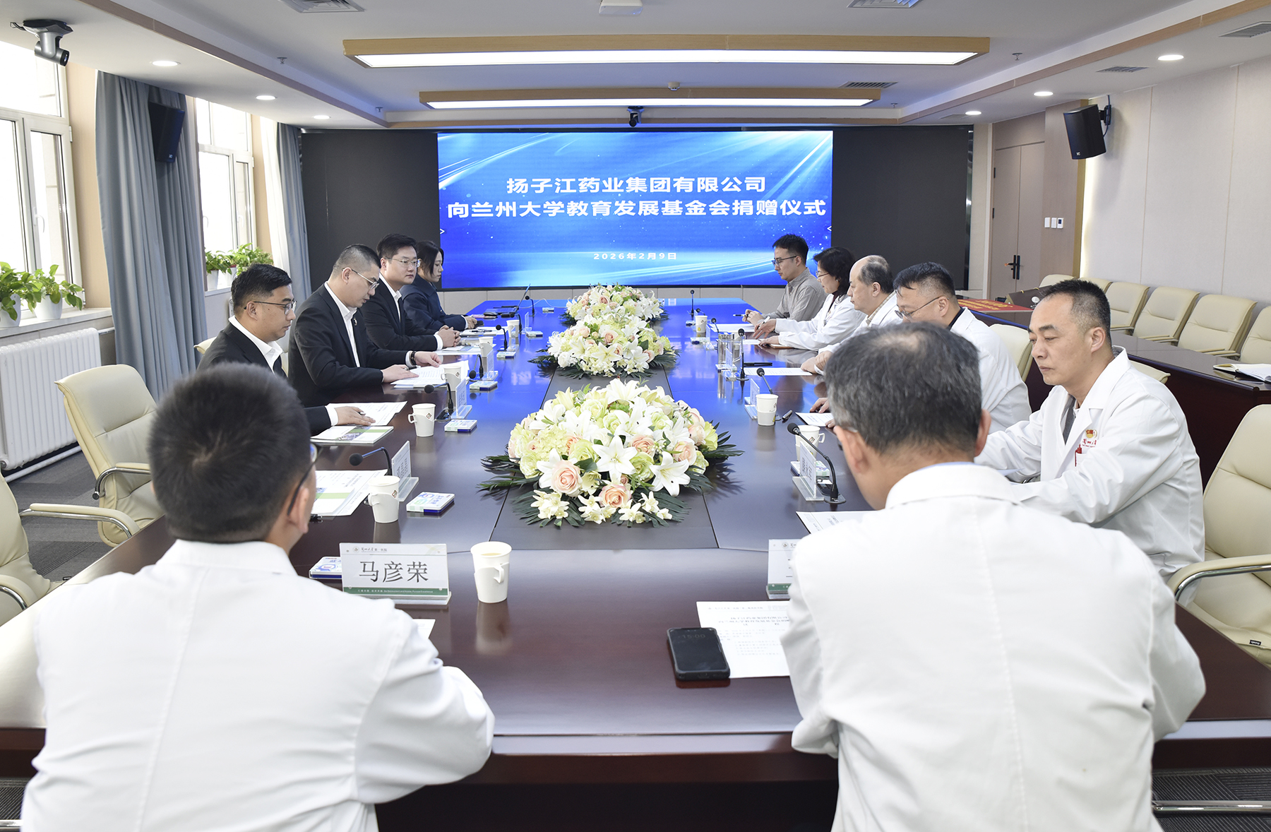 2月9日,扬子江药业集团有限公司向兰州大学教育发展基金会捐赠仪式在第一临床医学院举行。扬子江药业集团甘宁青总经理徐亚胜,甘肃基地负责人王国林及相关负责人,兰州大学副校长、医学部主任、第一临床医学院院长李汛,第一临床医学院副院长姬瑞出席仪式。