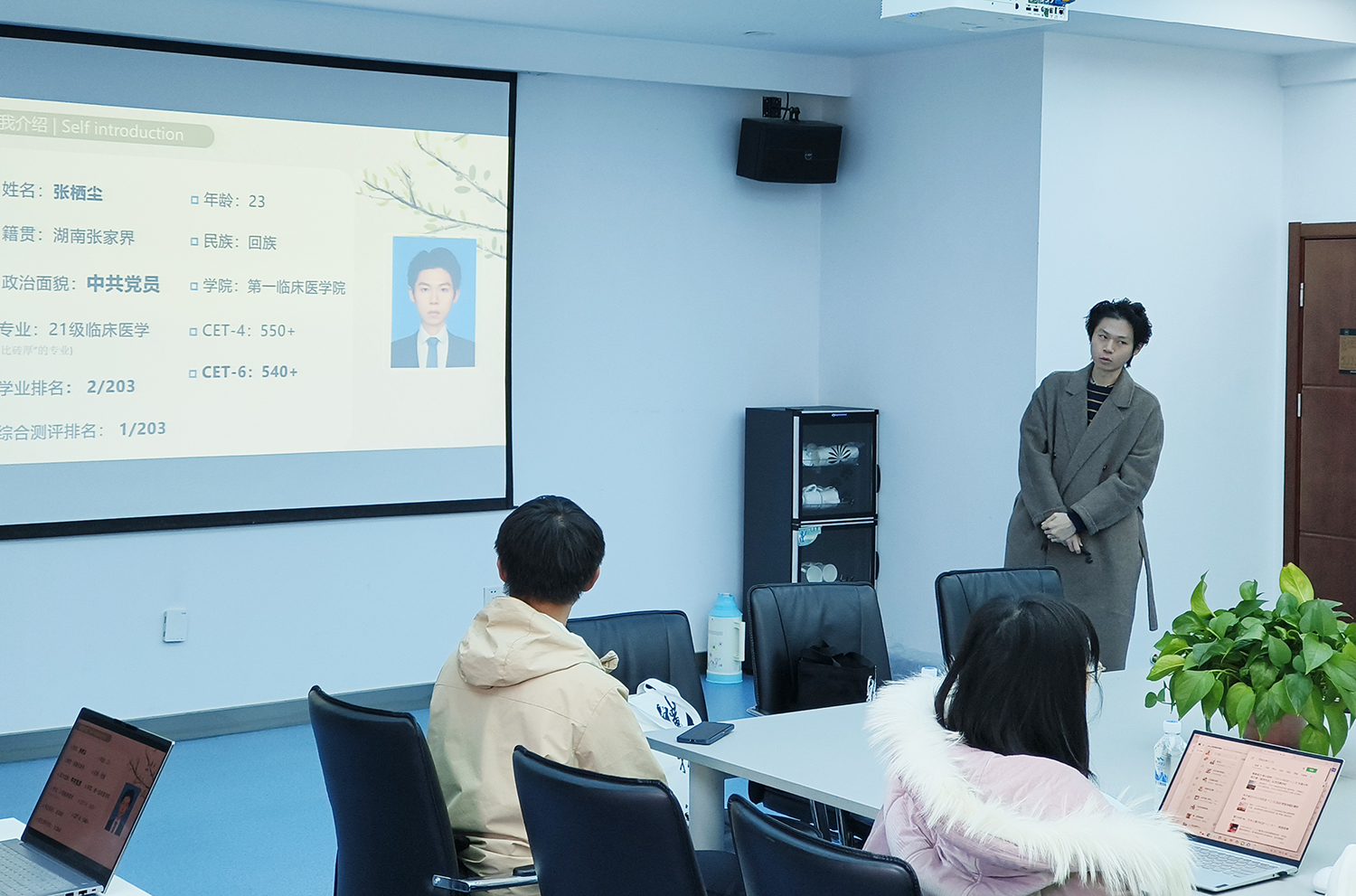 新闻与传播学院2023级吴昊向同学们分享了在校学习生活的体验,建议学弟妹们要根据兴趣爱好交流学习,做好自我规划,善用学校资源和机会,做到时间协调和自我完善。第一医院(第一临床医学院)2021级张栖尘结合自身参与科研竞赛的经历,建议学弟学妹们增强学习能力,打破信息差,并不断提升自己,定好目标,在大一就做好规划,不盲从,找节奏。