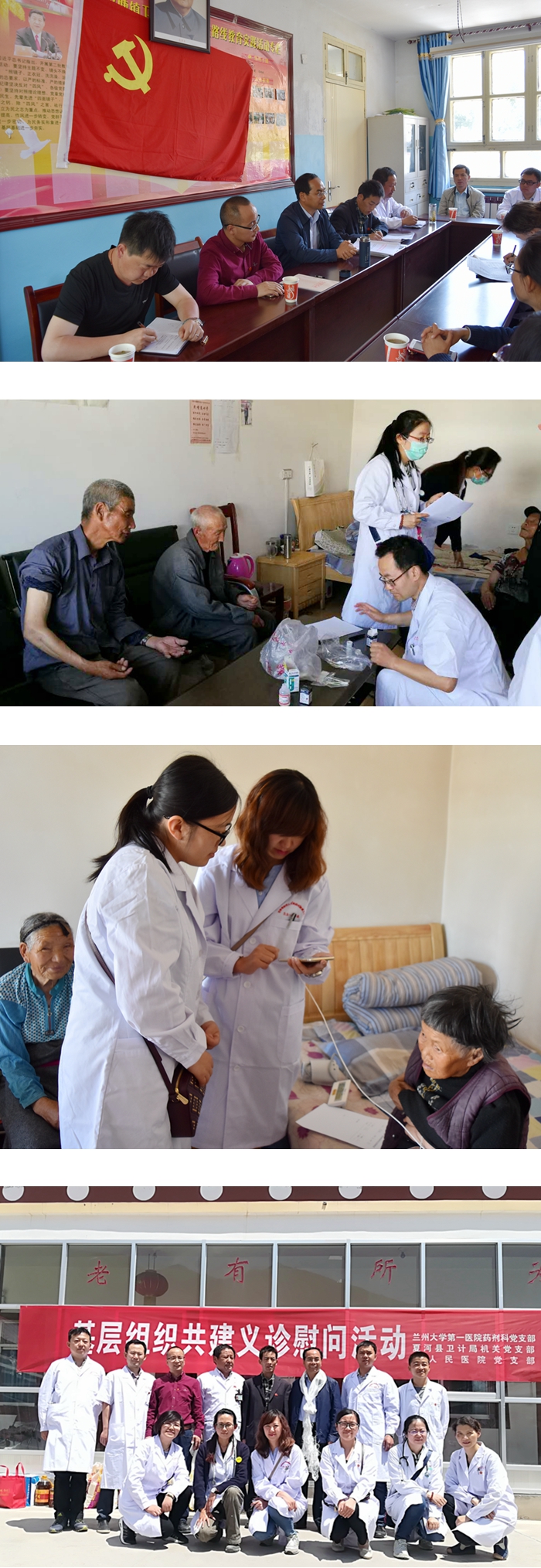 2017年6月30日, 在庆祝建党96周年来临之际,在医院党政领导的大力支持和推动下,我院药剂科党支部、甘南藏族自治州夏河县卫计局机关党支部和夏河县医院党支部,继2016年共同策划、发起 “基层党组织共建活动”之后,再次深入藏区,在夏河县王格尔塘镇展开了“‘两学一做’藏区行,结对共建提党性”活动,院党委书记赵社文应邀参加了此次活动。