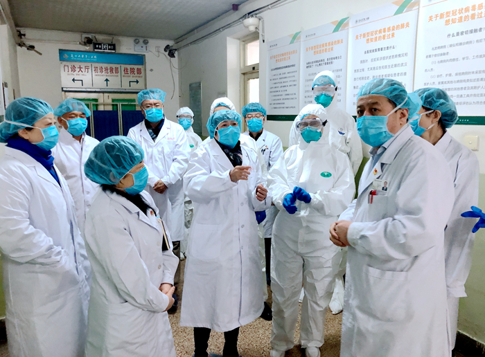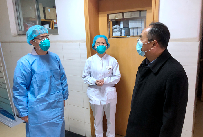 1月25日上午,李汛院长、赵社文书记及刘健副院长,带领医务处、后勤保障处、设备处、基建处等职能处室和相关临床科室负责人,对我院新型冠状病毒感染的肺炎疫情诊治防控工作进行了检查。