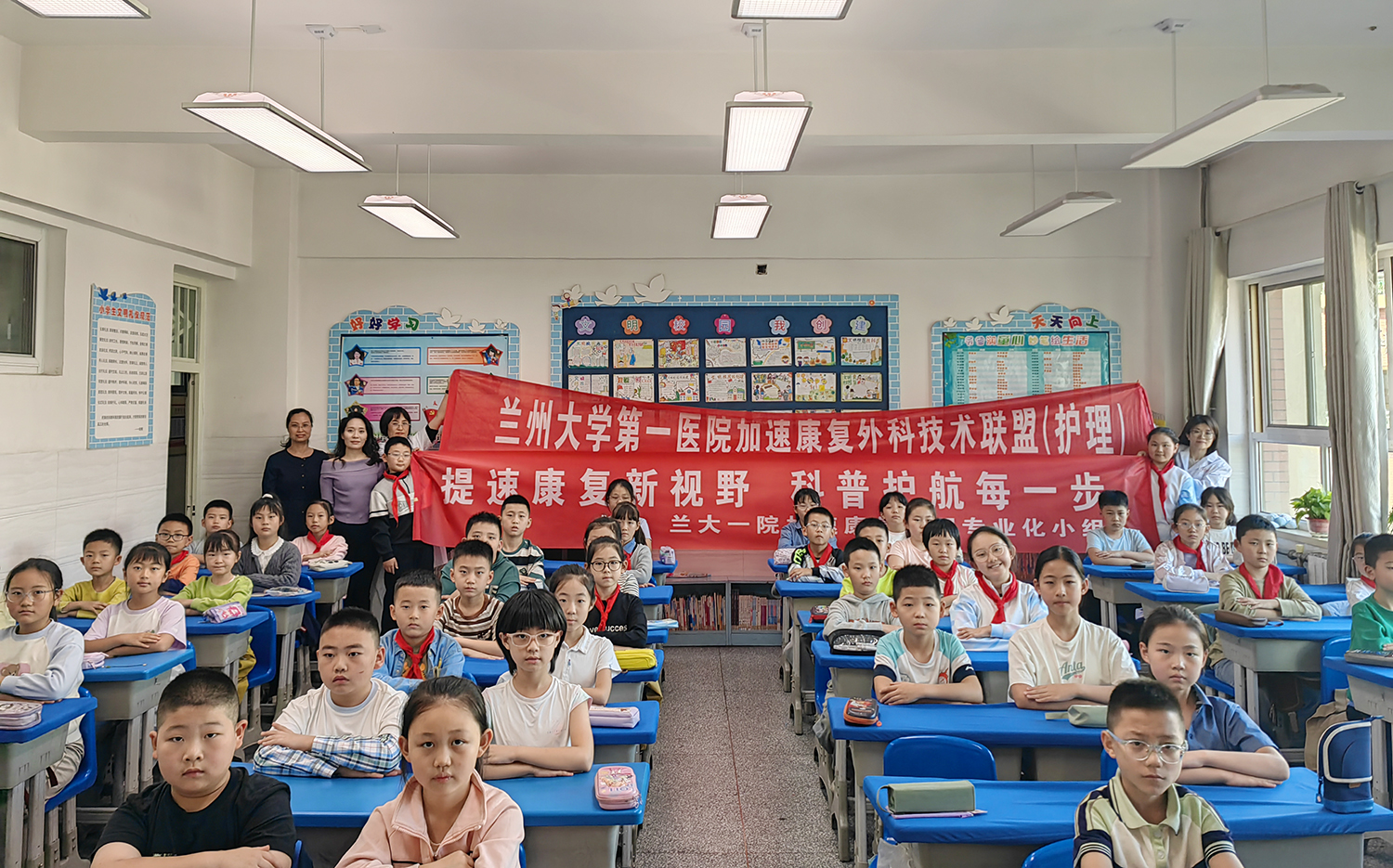 人文专业组和康复护理组走进甘农大附属小学,向小学生讲解运动损伤的初步处理办法,包括伤口清洁消毒、扭伤冷敷等关键知识,同时科普了康复训练的重要性与基本方法,帮助学生掌握科学应对常见伤害的知识。