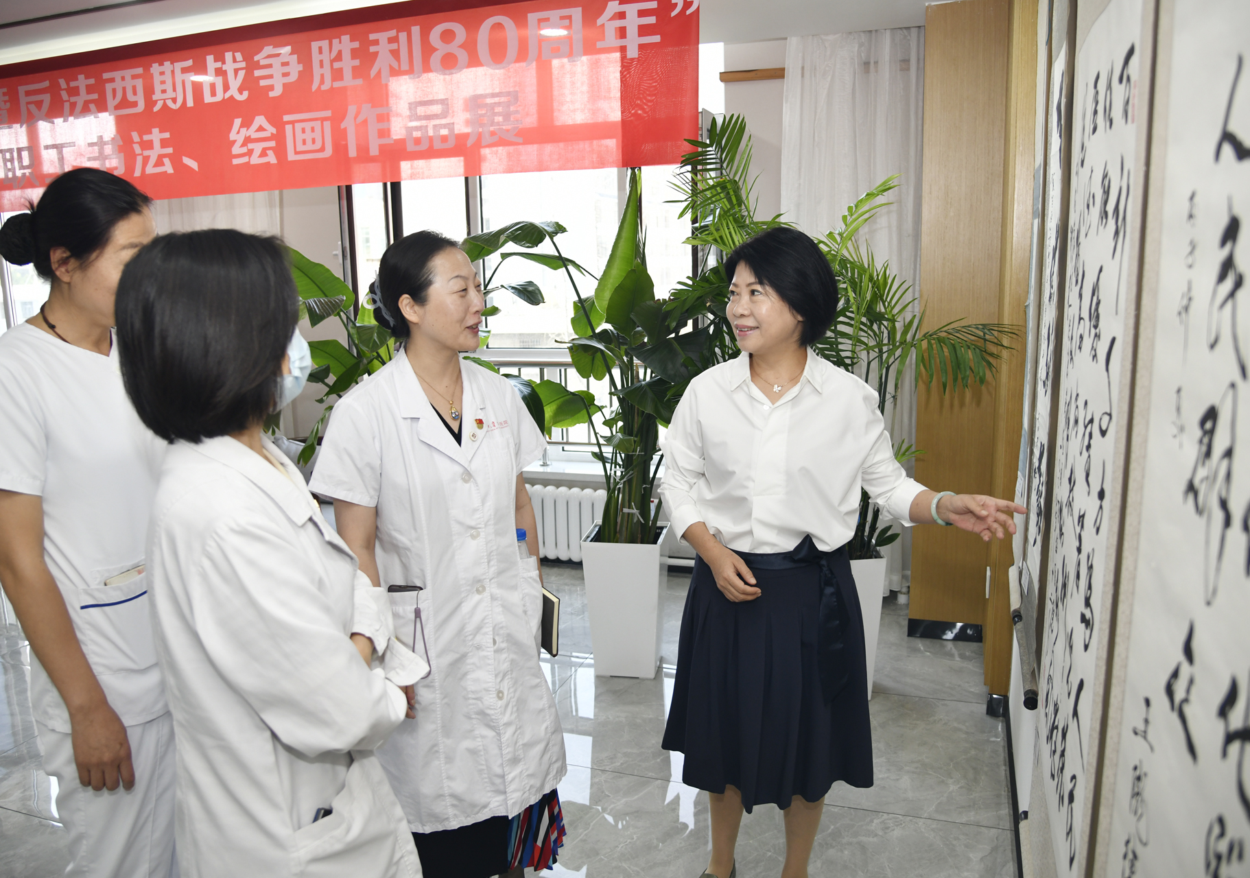 王定峰在致辞中指出,在隆重纪念中国人民抗日战争暨世界反法西斯战争胜利80周年之际举办本次展览,既是对历史的深情致敬、对革命先烈的深切缅怀,也是弘扬伟大抗战精神、推动医院文化建设、凝聚职工精神的重要举措。书画展为职工搭建了展示才情、交流创作的平台,充分体现了医院深厚的人文关怀和以人为本的管理理念,有效丰富职工精神文化生活,进一步助力医院软实力与高质量发展。