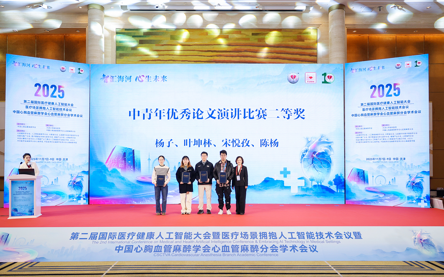 11月7日,在2025年中国心胸血管麻醉学会心血管麻醉分会学术会议上,兰大一院信息中心杨子为第一作者的论文《CaMPNet:用于合并症检测的心血管多模态预测网络》(CaMPNet: Cardiovascular Multimodal Prediction Network for Comorbidity Detection),从全国遴选出的60余篇优秀论文中脱颖而出,荣获中青年优秀论文二等奖。