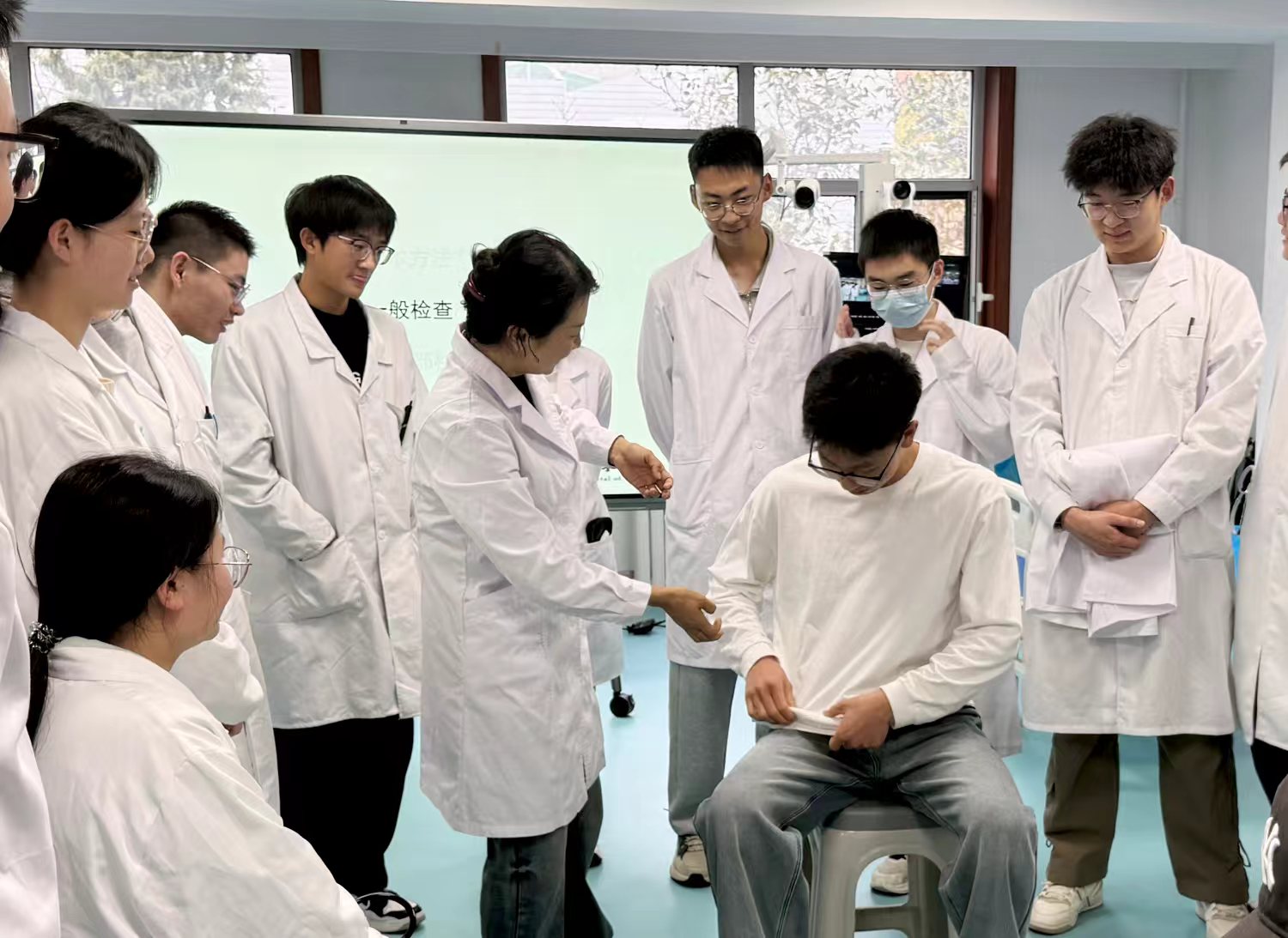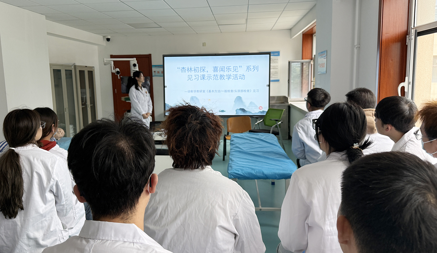 活动中,检体诊断学教研室牛滢、龚霞、赵成鹏三位教师进行了示范教学。课程将理论讲解与实操演示有机融合,教学设计科学完整,教学流程衔接流畅,充分展现了理论到临床实践的完整教学过程,为观摩师生提供了规范的见习教学范例。