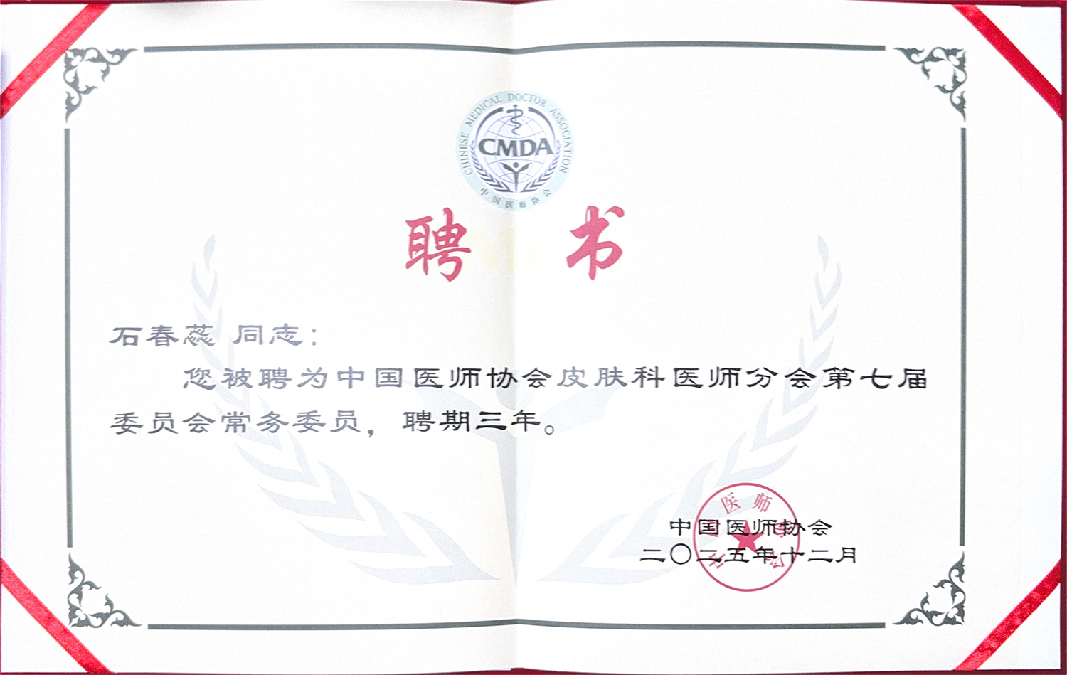12月20日,中国医师协会皮肤科医师分会(CDA)第七届委员会选举成立会议在西安举行。兰大一院皮肤性病科石春蕊教授当选为第七届委员会常务委员。