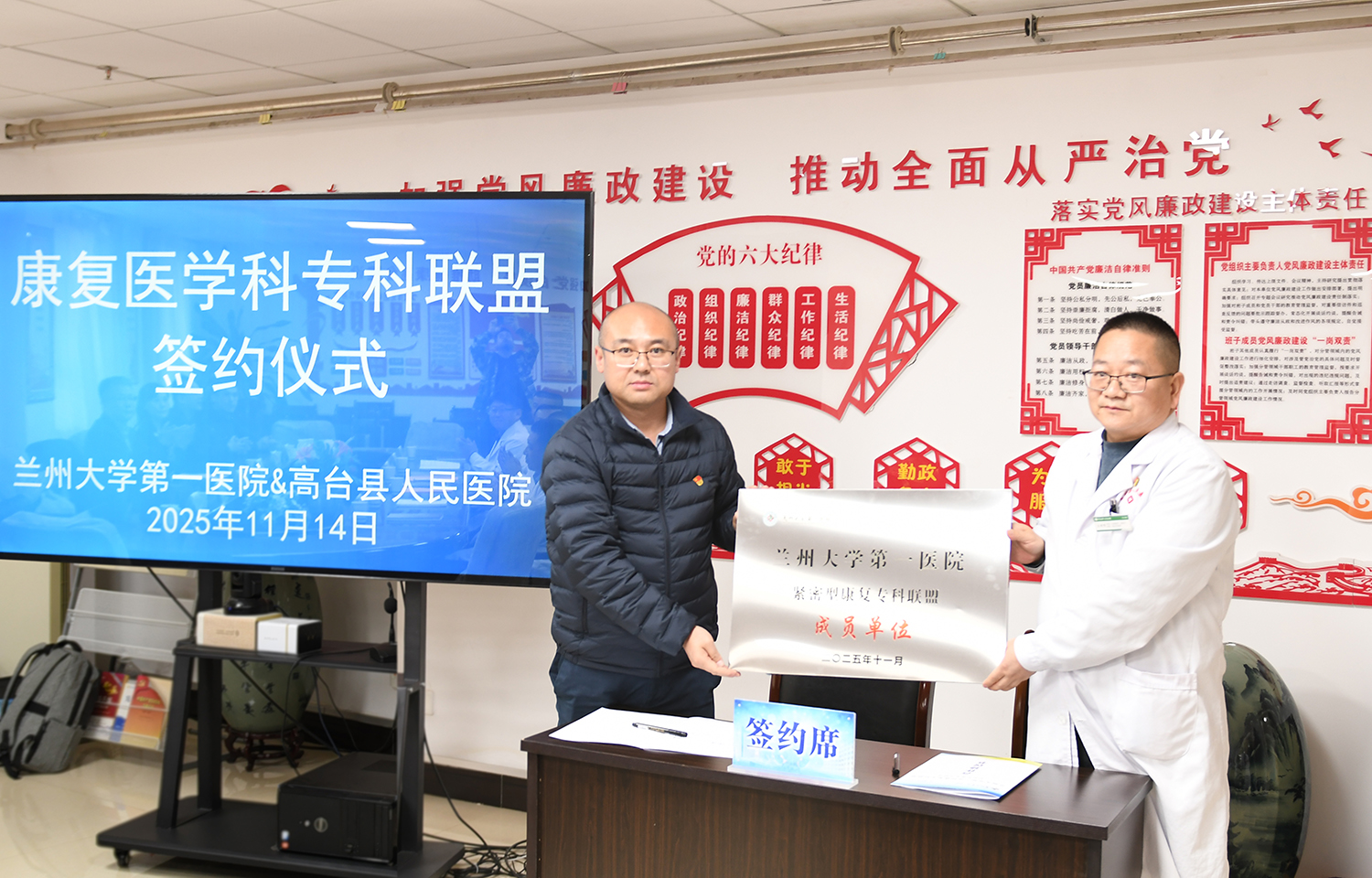 为深化党建与业务深度融合,推动优质医疗资源下沉基层,助力区域医疗卫生事业高质量发展,11月14日至15日,兰大一院东岗院区党总支组织专家团队赴高台县人民医院,开展支部共建签约、康复医学科专科联盟授牌、义诊查房及学术交流系列活动,并举办全县卫健系统医院高质量发展与安全管理培训班。