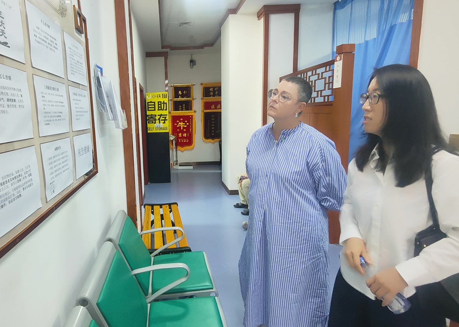 两位专家在中医科护长的陪同下参观了中医诊疗区域、传统中药展柜、特色治疗区域等地。相关工作人员介绍了中医的基本理论、诊疗理念以及中医在常见疾病诊疗、慢性病调理等方面的独特优势。克里斯蒂安妮・勒马赫-杜贝尔德克女士亲身体验了推拿、火龙灸等中医特色疗法,直观感受中医非药物治疗的独特疗效。