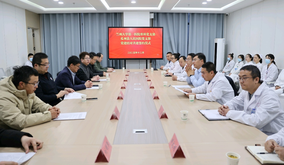 12月26日至27日,兰大一院骨科党支部与酒泉市瓜州县人民医院开展党建结对共建及骨科专科联盟建设活动。党支部书记、科主任赵海燕,党支部党员及骨科医护人员参加活动。