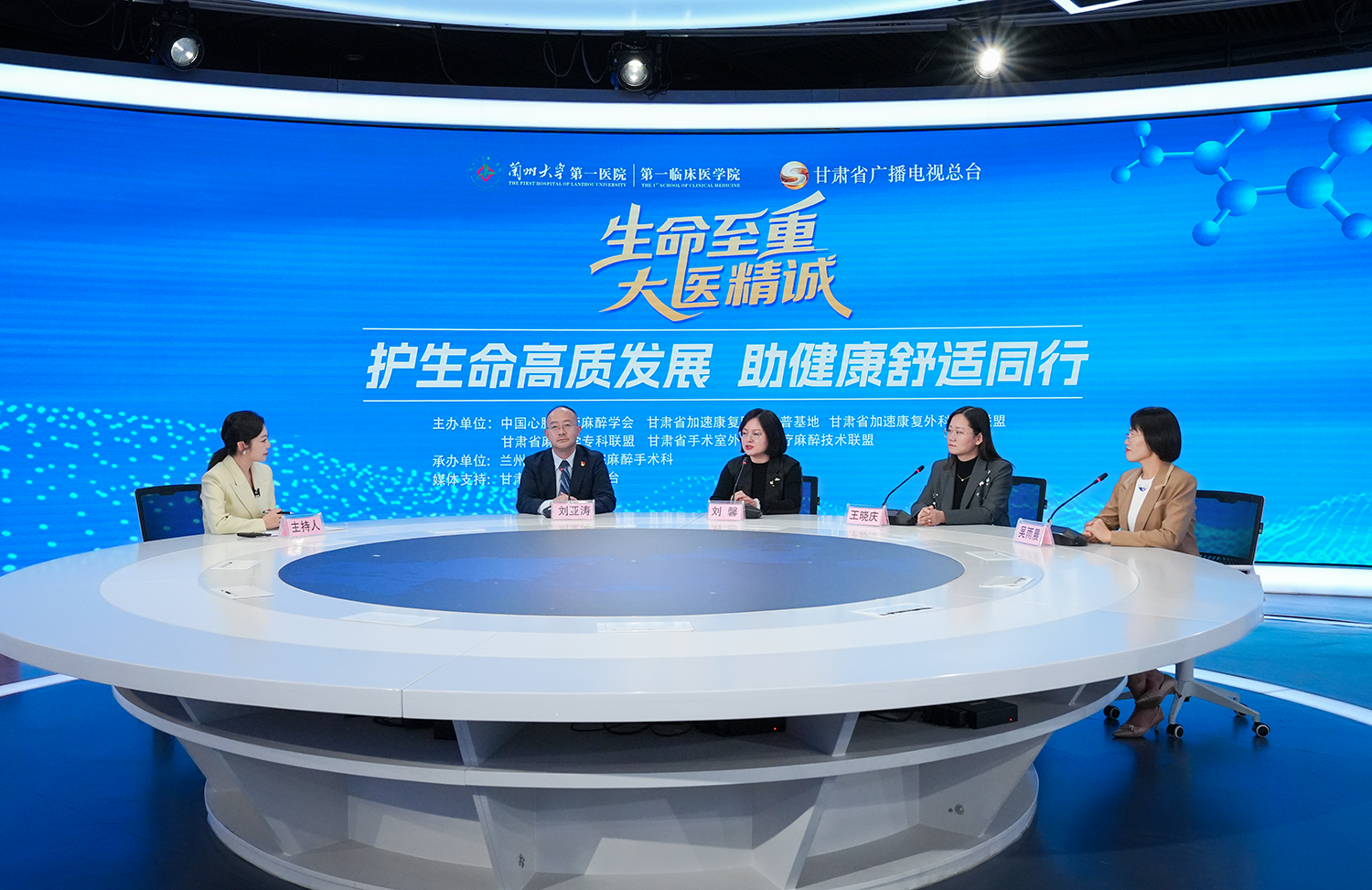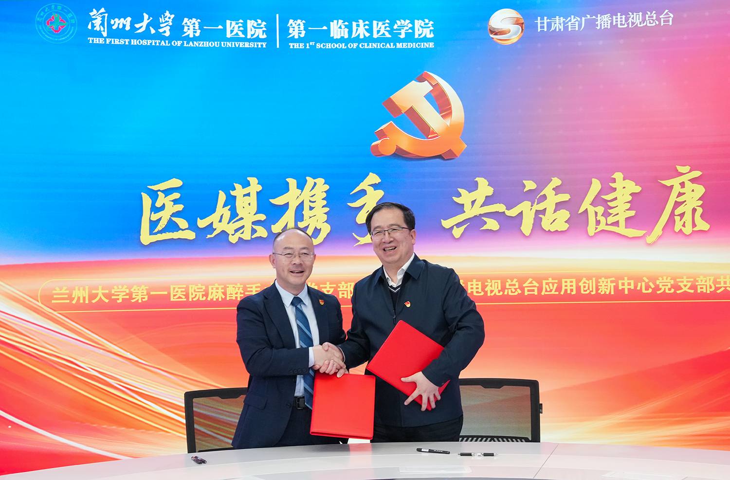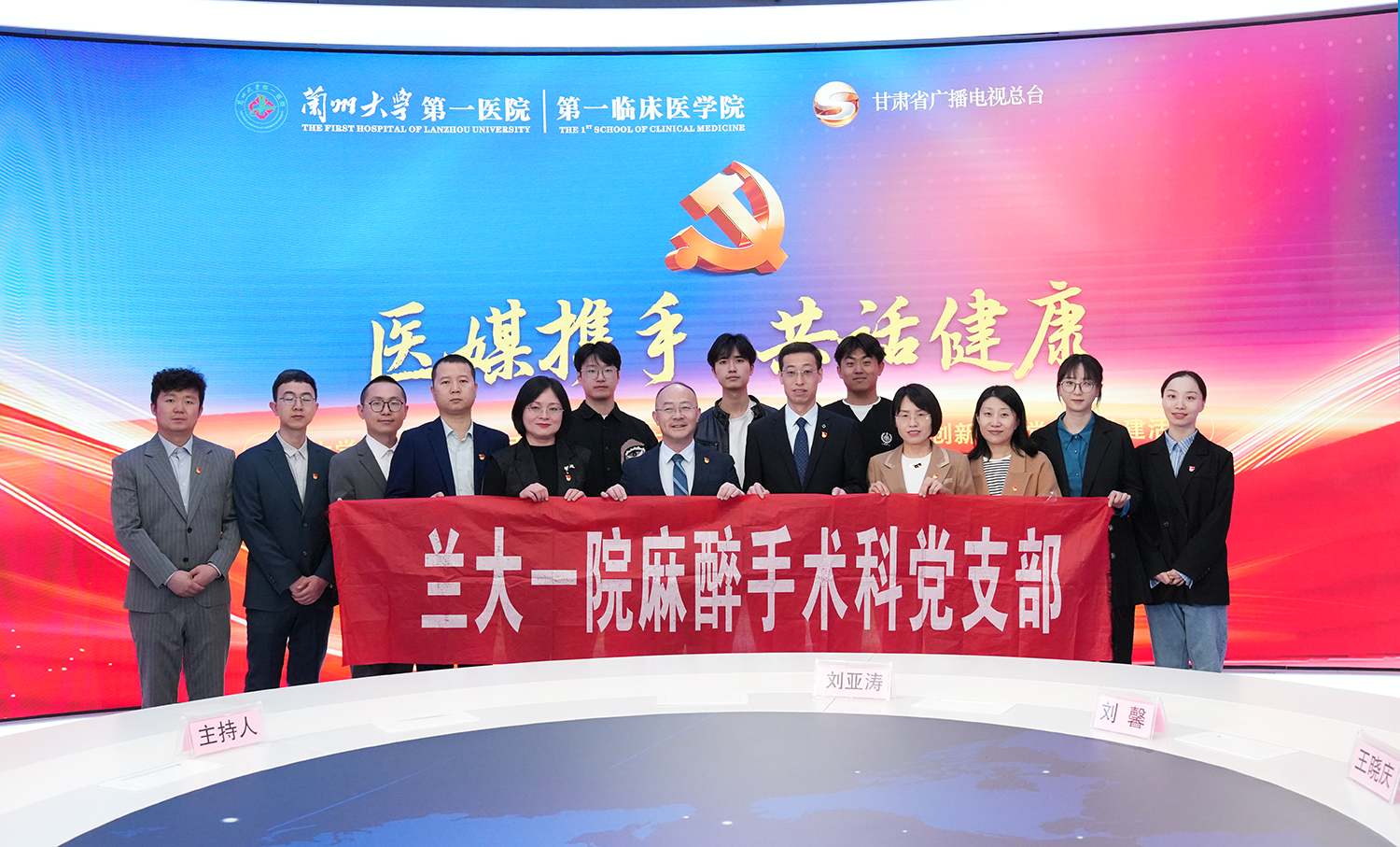 在第十届“中国麻醉周”来临之际,兰大一院麻醉手术科党支部与甘肃省广播电视总台应用创新中心党支部在甘肃省广播电视总台全媒体中心举行“医媒携手,共话健康”支部结对共建暨“中国麻醉周”科普直播活动,帮助公众了解麻醉常识、掌握急救技能、增强健康意识。