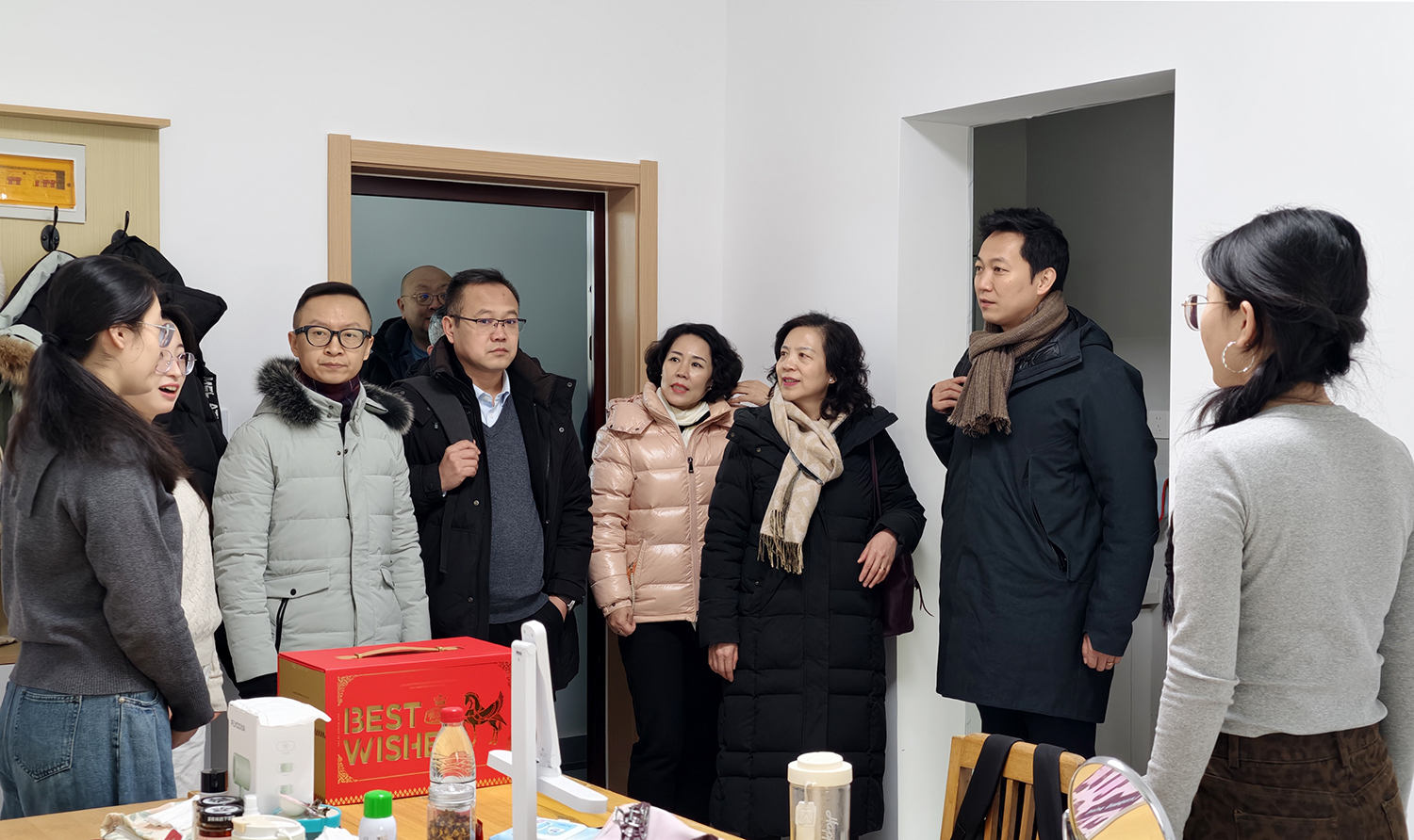 副院长孟文勃、教务处处长常桂霞、学生党总支书记(学生处处长)朱杰等一行9人,先后走访慰问了两家实习基地的实习同学,与实习同学进行深入交流,详细了解他们的学习与生活状况,并代表学院送上新春慰问品和节日祝福。