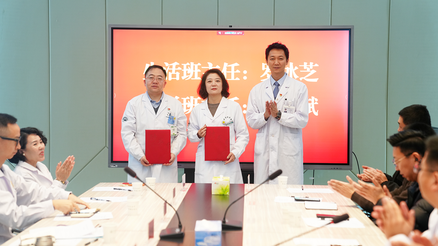 武威市人民医院与甘肃省武威肿瘤医院负责人分别汇报了2025年度实习教学工作,详细介绍了在临床带教、过程管理、考核评价等方面采取的举措与取得的成效。双方就进一步深化合作、拓展交流进行了探讨。会上还举行了实习班级班主任与班委聘任仪式,为相关人员颁发了聘书,完善了实习期间的教学管理机制。