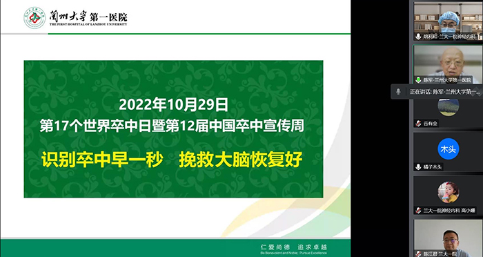 2022年10月29日是第17个世界卒中日,宣传主题是“识别卒中早一秒,挽救大脑恢复好”,为提高广大群众对脑卒中危害健康的认识,兰大一院卒中中心开展了线上科普讲座活动。