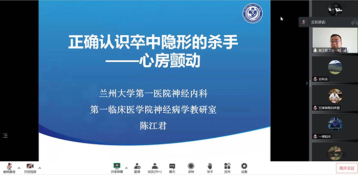 本次线上科普讲座活动邀请兰大一院卒中中心陈军主任医师、谷有全主任医师、陈江君主任医师、姚利和主治医师和王亚平健康管理师参加,围绕脑卒中的预防、治疗和康复,各位讲者深入浅出地分享了一系列科普知识,得到线上听众一致好评,共有约130人参加了此次线上活动。