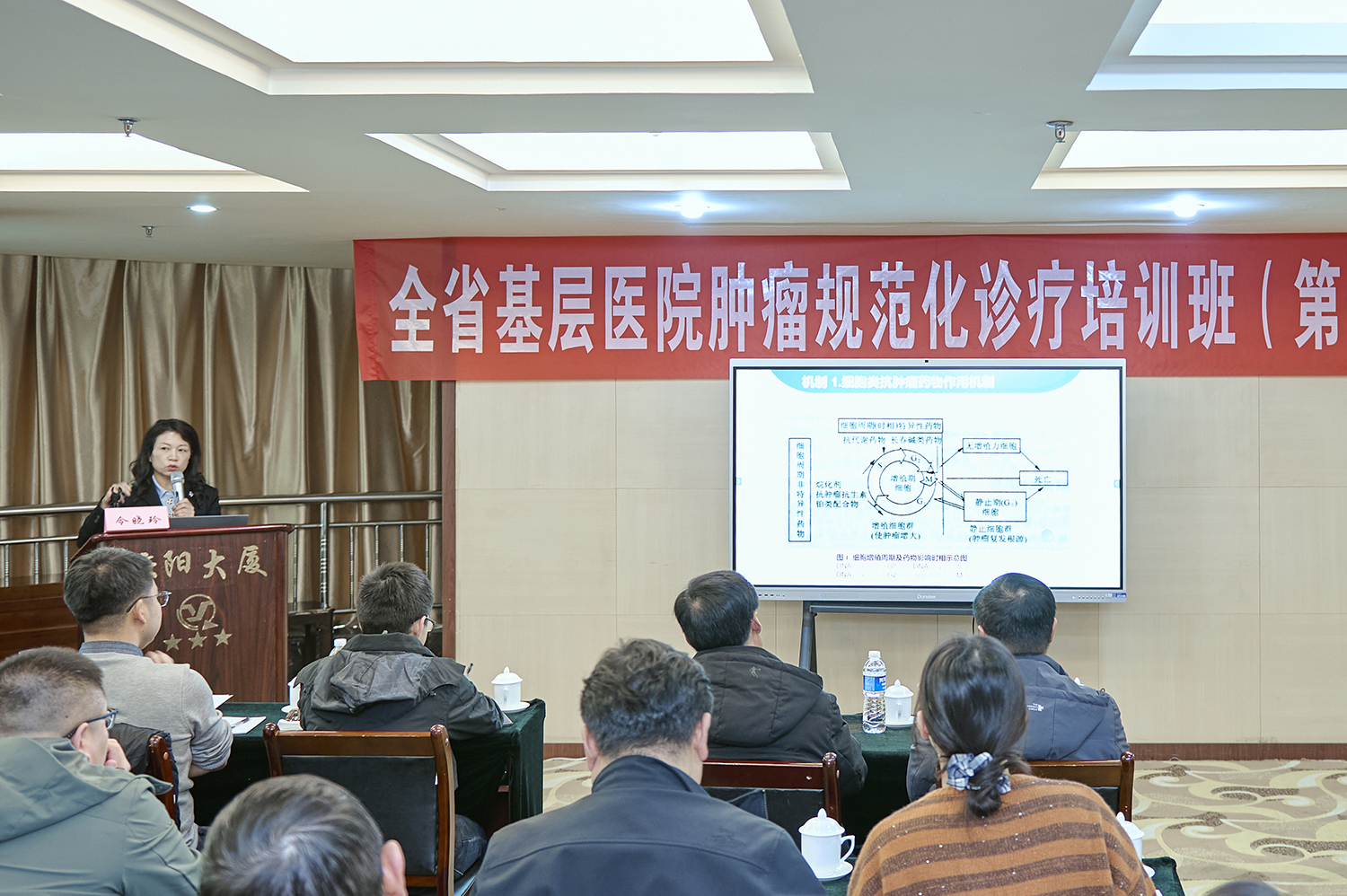 兰大一院副院长侯小明教授、肿瘤科首席专家赵达教授、肿瘤科主任令晓玲、肿瘤科三病区主任马守成教授等出席活动。来自全省县级医院肿瘤科的30余名骨干医师参加培训。