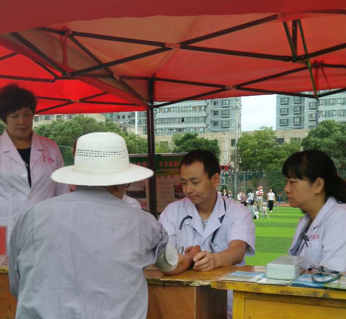 此次义诊活动队员由朱晓亮、陶仲宾、杨忠霞、叶荣组成,前来咨询问诊的疾病包括内科、外科、妇科、儿科等范畴,队员们认真接待每一位前来就诊的患者,耐心解答患者的各种疑惑,对需要进一步检查的患者给予相关指导,义诊现场免费为居民测血压、进行各专科常规检查、发放各种健康宣传资料,展现了我院医务人员良好的医疗风范。