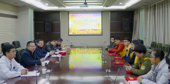 团委书记魏红斌在会上介绍了我院近年来开展青年志愿者活动基本情况,对13名完成基础服务任务的志愿者工作情况进行了评价;门诊部护士长付晓燕介绍了志愿者们在各自岗位的志愿服务情况;青年志愿者们就参加志愿服务活动的感受进行了交流分享;胡万军副书记、王建民主席、褚沛处长为完成志愿服务任务的志愿者们颁发了荣誉证书。