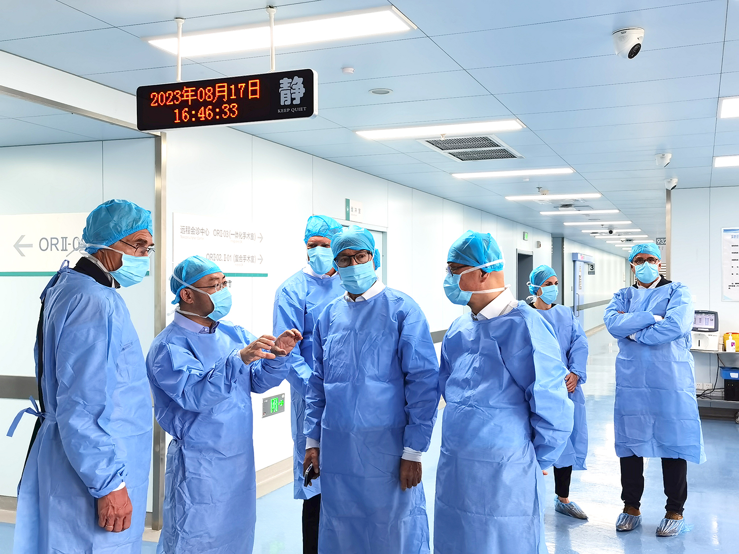 专家团队先后前往参观并了解复合手术室、一体化手术室、达芬奇手术间等术间麻醉、手术、护理工作。专家组一行前往了解麻醉后恢复室(PACU)医疗护理工作及多术间、PACU等多区域监护与麻醉机及注射泵等设备互联互通与结构化围术期大数据平台建设、运行情况。