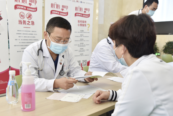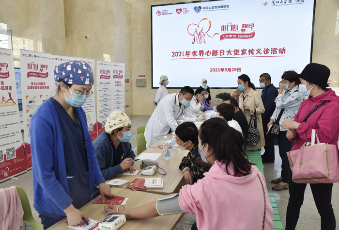 9月29日是“世界心脏日”,2021年的主题是“USE HEART TO CONNECT(心心相印)”。当日上午,兰州大学第一医院由心内科张钲教授、白明教授领衔坐诊,率姚亚丽主任、张锦主任、彭瑜副主任、孟晓雪副主任、高涵翔副主任等权威专家在医院门诊综合楼一楼大厅举行大型公益活动,播放公益宣传片普及心血管健康知识及心脏急救常识,现场向公众示范心肺复苏操作及紧急状态下AED(自动除颤器)的使用方法。同时开展安全用药咨询、现场健康咨询、心脏疾病筛查(测血压、心律失常、心肌缺血筛查等),发放心脏日科普手册1000余册,接待市民约600余人次。