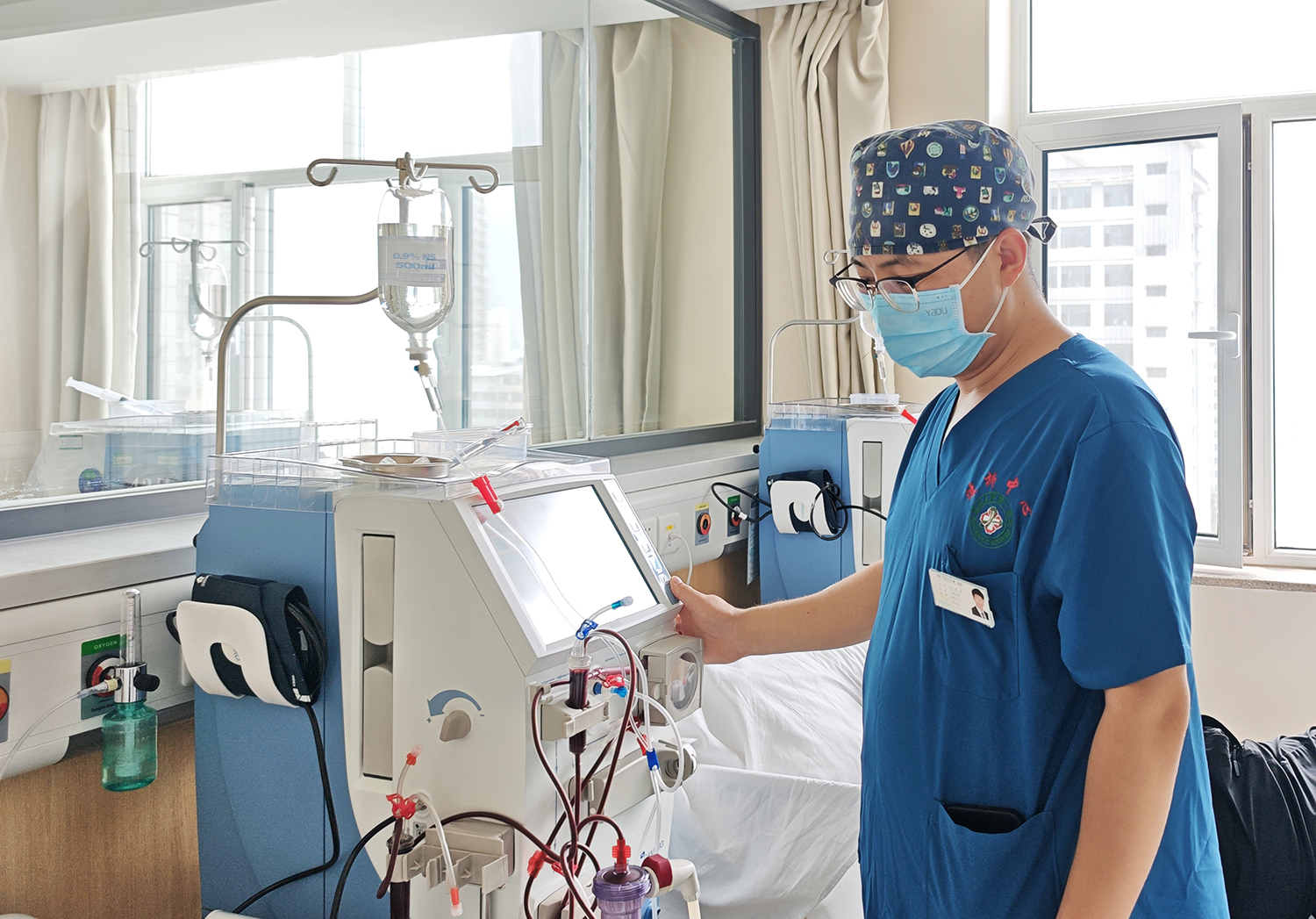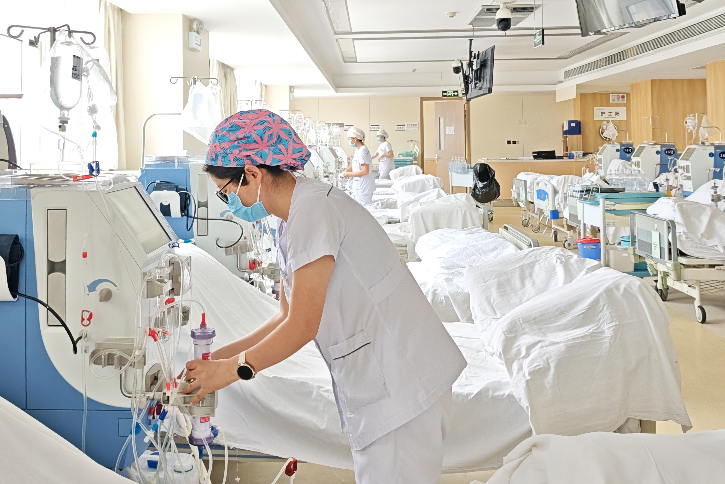国庆、中秋双节期间,兰大一院肾病科血液透析中心只有仪器的平稳运转和医护人员忙碌的身影,全体医护人员用责任与担当为透析患者筑起节日里的生命防线。