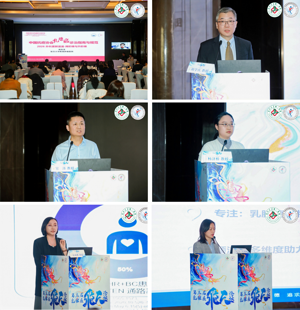 论坛聚焦乳腺癌诊疗全流程关键环节,设置主题授课和热点研讨两大板块。复旦大学附属肿瘤医院吴炅教授、杨犇龙教授,浙江大学医学院附属二院胡学庆教授,新疆肿瘤医院吴涛教授,四川大学华西医院杨济桥教授,兰大一院肿瘤内科副主任医师赵成鹏、乳腺科副主任医师肖奕分别围绕乳腺癌外科治疗进展、2026版外科治疗速览、扩张器/假体植入、上肢淋巴水肿外科治疗、腔镜手术技巧、靶向治疗进展、全病程康复管理等议题进行专题分享。