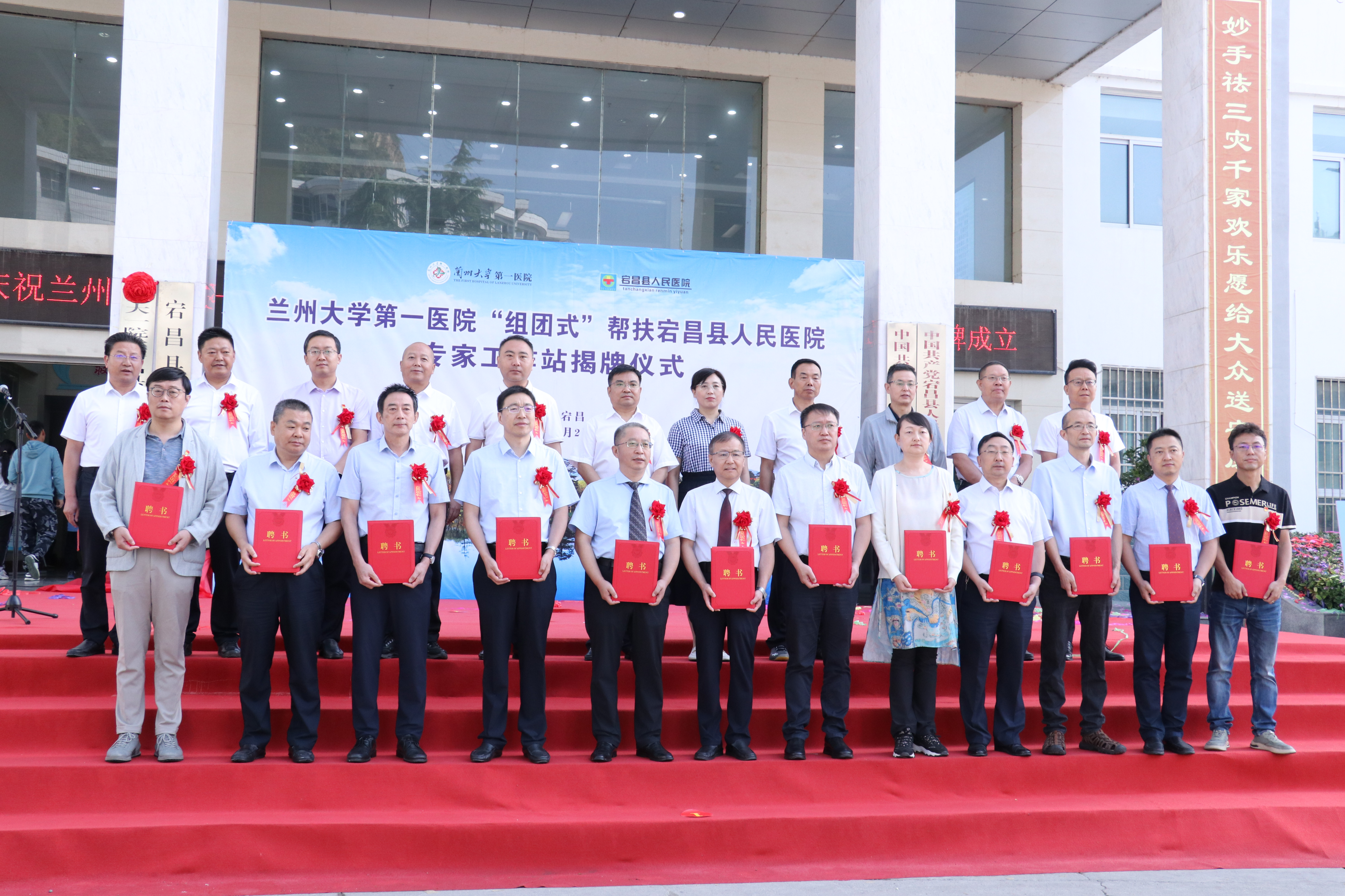 9月2日上午,兰大一院“组团式”帮扶宕昌县人民医院专家工作站成立暨揭牌仪式在宕昌县人民医院举行。陇南市卫健委主任魏继娥,宕昌县政府副县长、县人才工作领导小组副组长苟睿,宕昌县委组织部、县人社局、县卫健局等部门主要负责人,兰大一院党委副书记、副院长、工会主席车世平、14名专家工作站专家及2023年兰大一院“组团式”帮扶医疗队员参加仪式。仪式由县委常委、统战部部长何玉柏主持。
