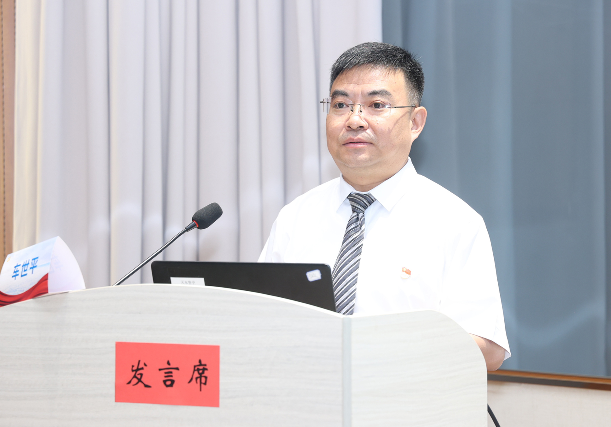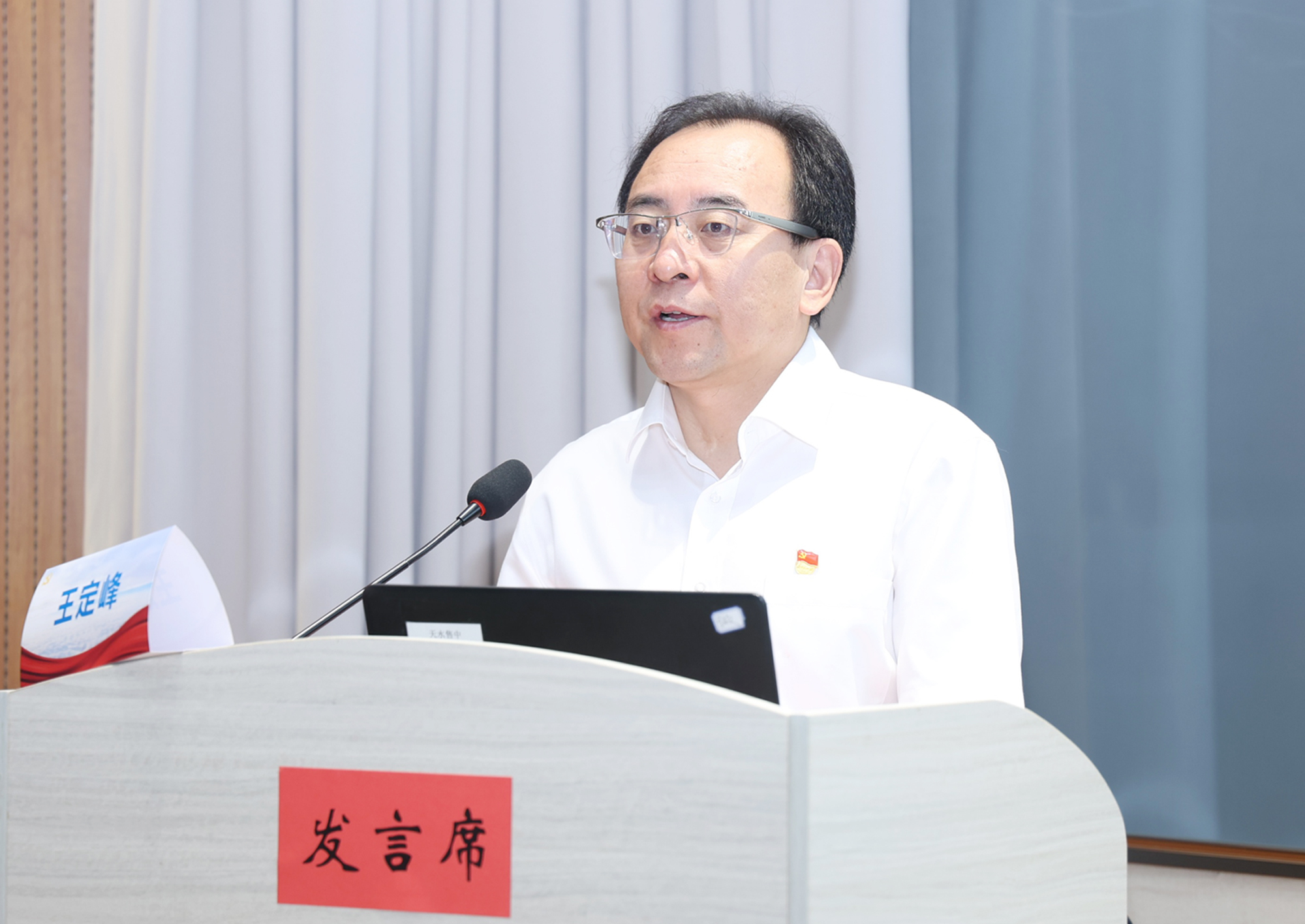 王定峰在致辞中表示,公立医院作为党领导的卫生健康事业的主力军和联系服务群众的重要窗口,必须毫不动摇加强党的建设,确保改革发展始终沿着正确方向前进,为健康中国建设提供坚强保障。药事管理,是医院运行的核心枢纽,关乎医疗安全、诊疗效率与患者福祉,要坚持党的领导,确保药事管理方向正确、行稳致远。希望以此次大会为契机,持续深化与兄弟单位的交流合作,切实把党的政治优势、组织优势和医院现代化治理深入结合,共同为推进健康中国建设、服务中国式现代化贡献更大力量。