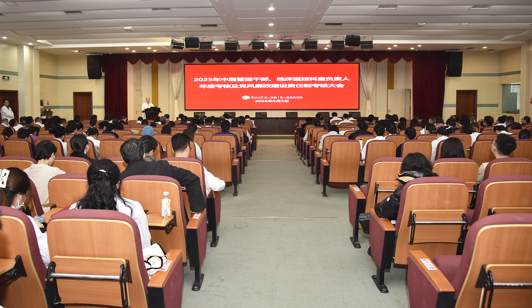 2月5日,兰州大学第一医院(第一临床医学院)组织召开2025年度中层管理干部、临床医技科室负责人述职述廉考核大会。学校副校长、医院院长李汛,学校党委常委、医院党委书记王定峰等院领导班子成员,副处级干部,党总支、党支部书记,临床医技科室主任、护士长,行政后勤科级干部代表,职工代表,民主党派职工代表参加大会。