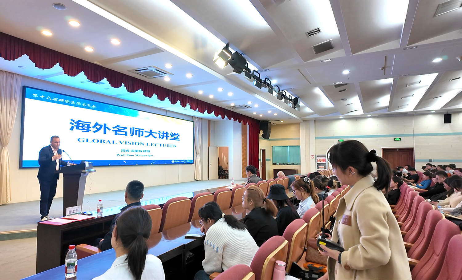 在海外名师大讲堂暨研究生优秀成果评选与奖励讲座上,Tom Wainwright教授为医学生带来“科研数据的挖掘”专题分享,通过丰富实例解析骨科康复评估中的数据运用逻辑与沟通策略,启发学生对医学数据价值的思考。