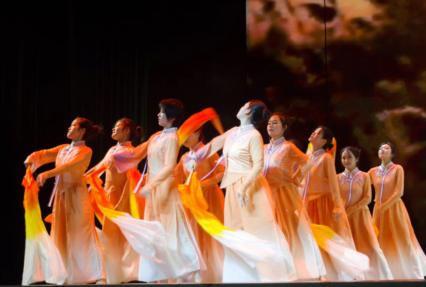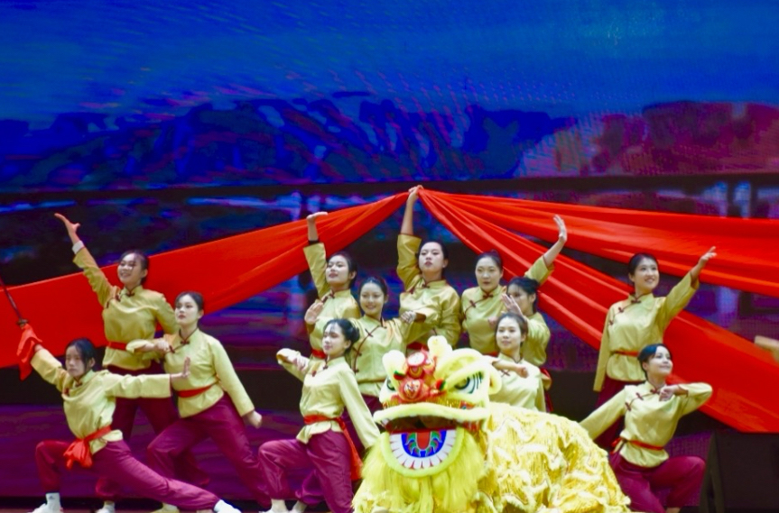 《黄河随想》以中华民族母亲河黄河为精神主线,分三个篇章。上篇“保卫黄河”以铿锵舞步再现波澜壮阔的历史画卷,彰显青春磅礴力量;中篇以优美抒情韵律,展现黄河滋养的生机与学子成长蜕变;下篇融合“龙的传人”文化符号与黄河包容坚韧品格,诠释新时代青年传承精神、矢志担当的坚定信念。节目将专业特色与家国情怀融入艺术表达,展现了学院学子昂扬向上的精神风貌。