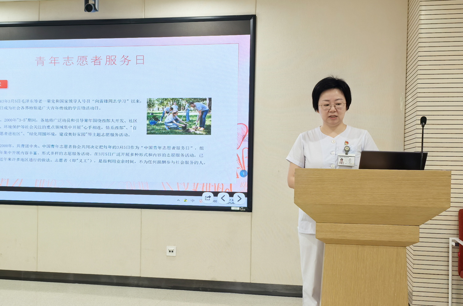 门诊部护士长王岩为志愿者们讲解了志愿服务精神及门诊志愿服务规范和总体要求,并对医院楼层分布、就医流程、导诊分诊、志愿者安全及其他常见问题处理等相关知识进行了培训。