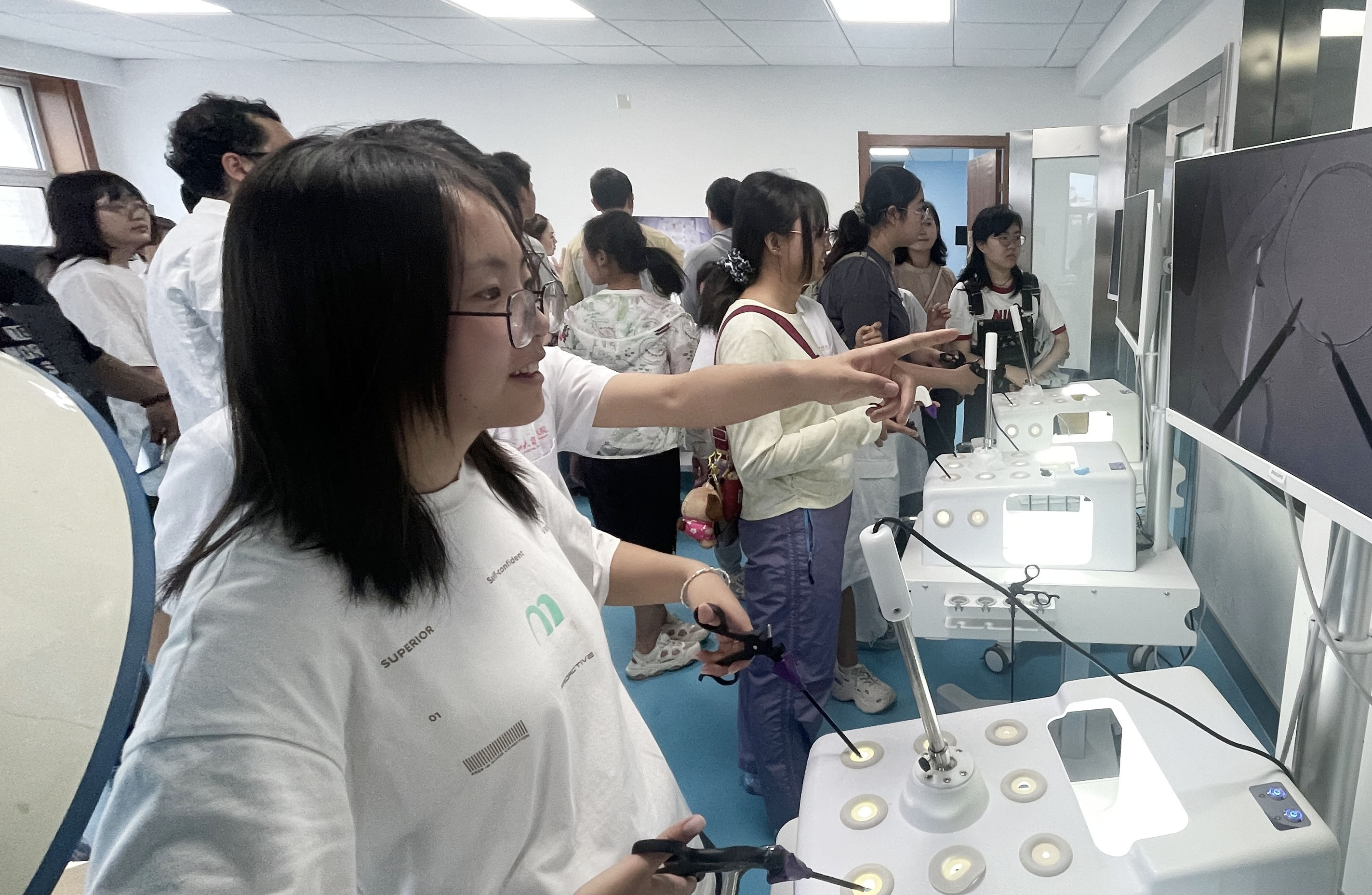 活动中,志愿者们参观了院史馆,了解医院发展历史。在临床技能中心老师的带领下,志愿者们参观了微创手术模拟培训中心、模拟手术室、模拟产房等实训室,现场观摩体验了模拟腹腔镜手术训练系统等教学设备,并学习心肺复苏、AED使用等常用急救知识技能。