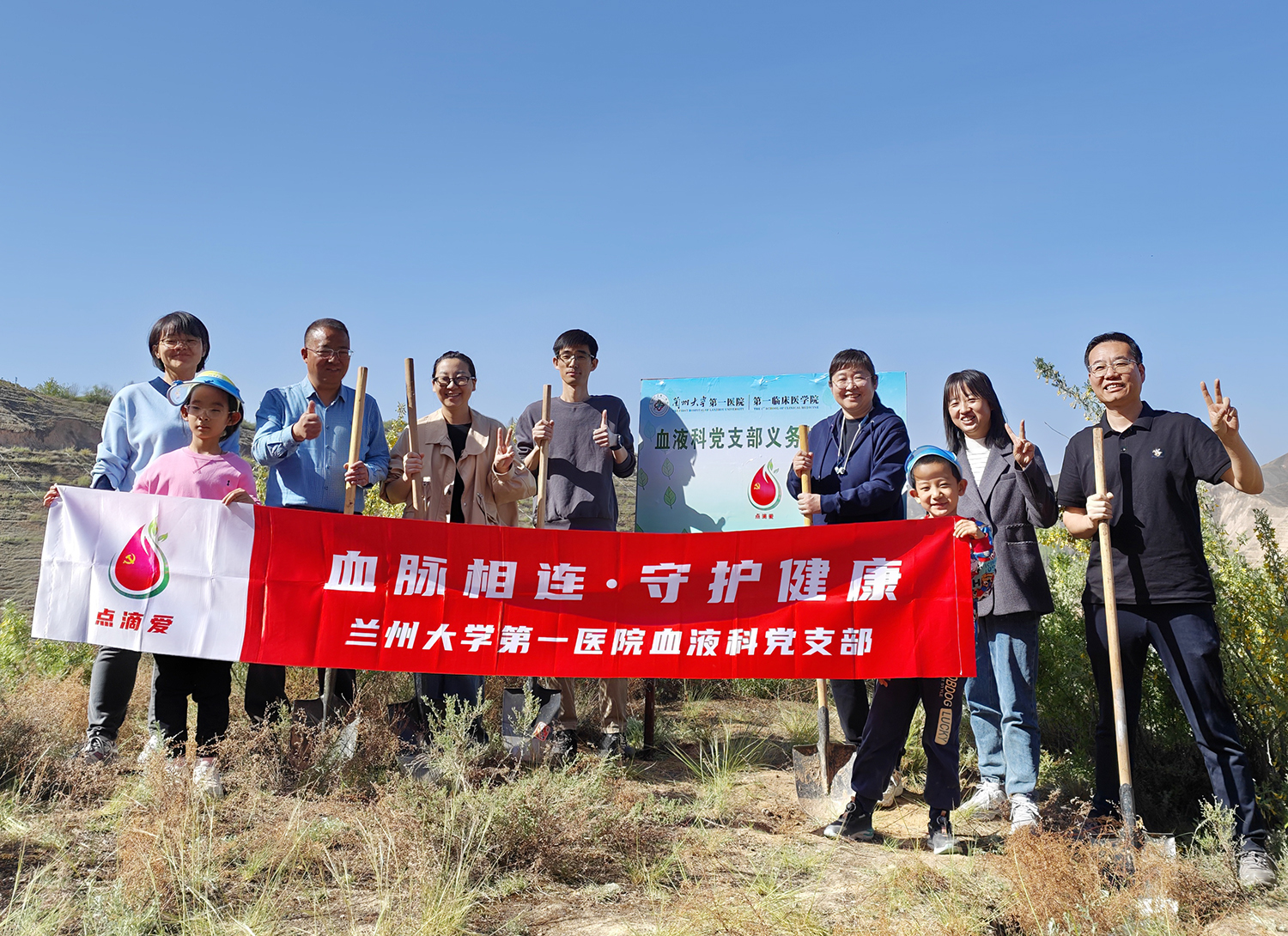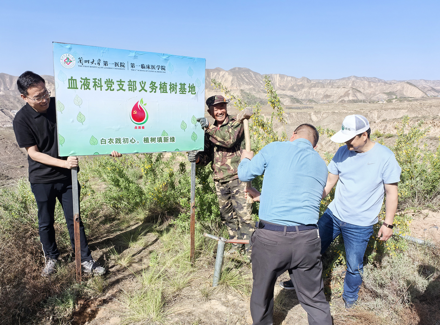 4月25日上午,兰大一院血液科党支部组织全体党员前往兰州市南北两山绿化指挥部所属的北龙口附近北山绿化现场,开展以“白衣践初心,植树添新绿”为主题的义务植树主题党日活动。